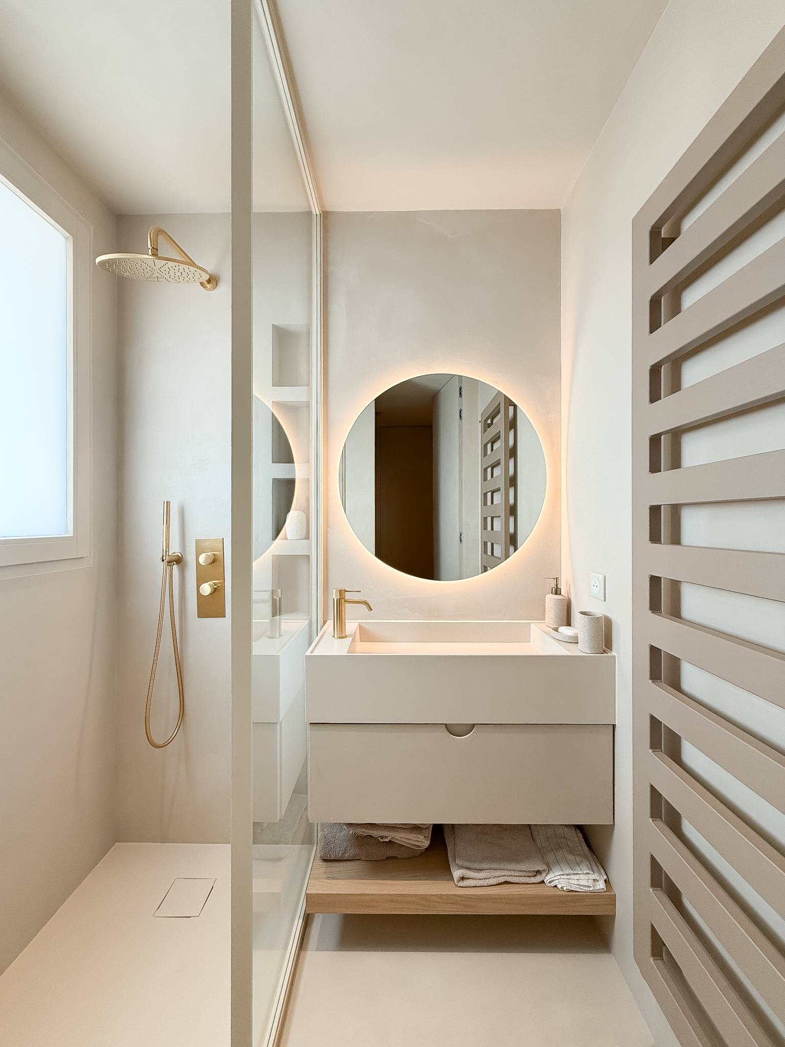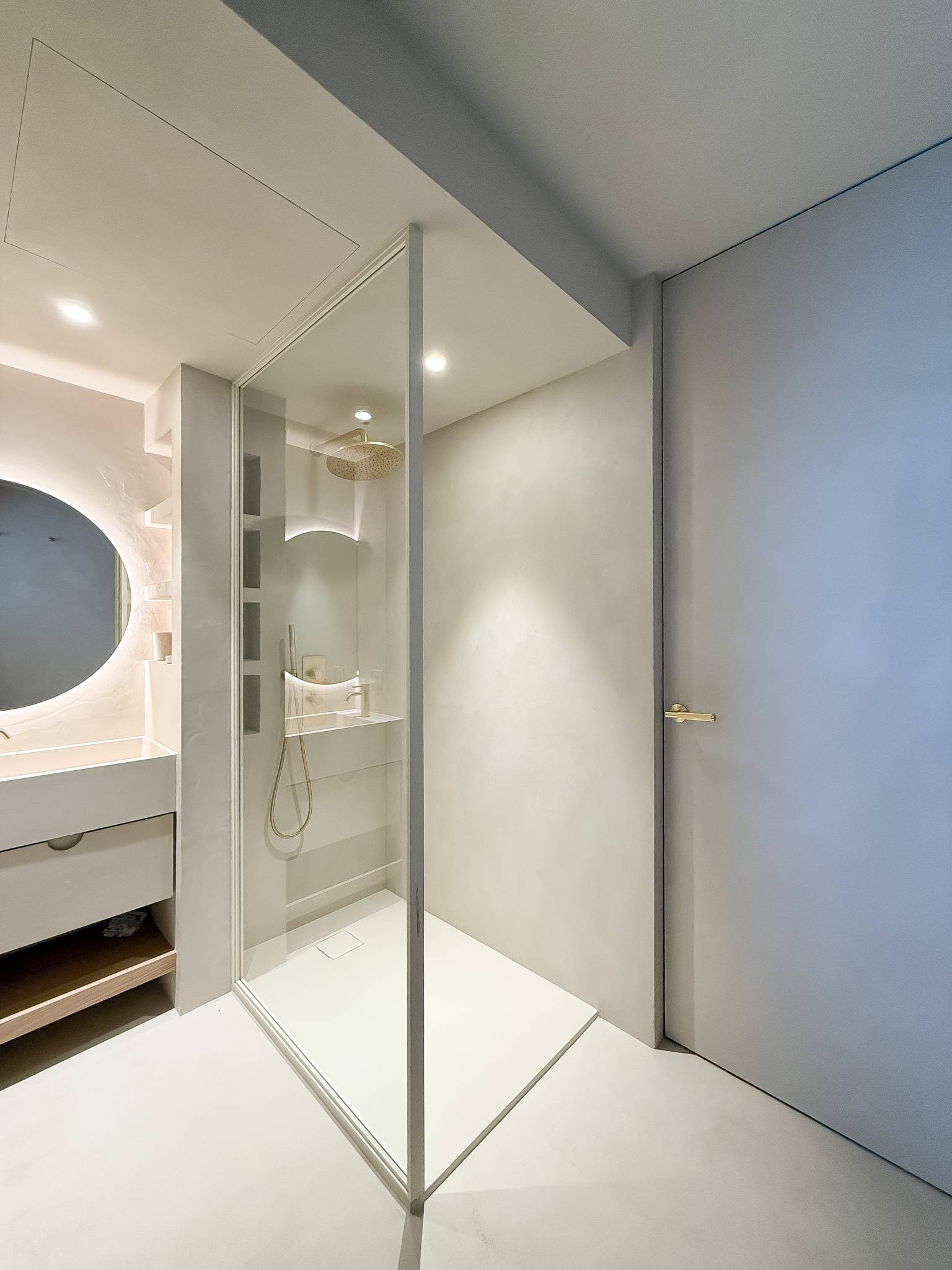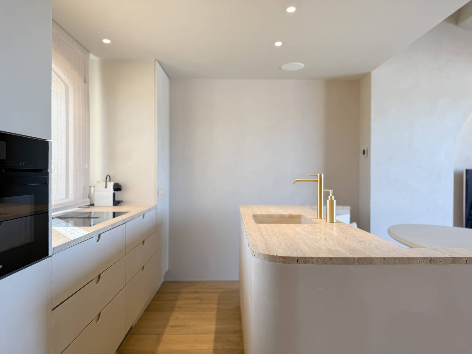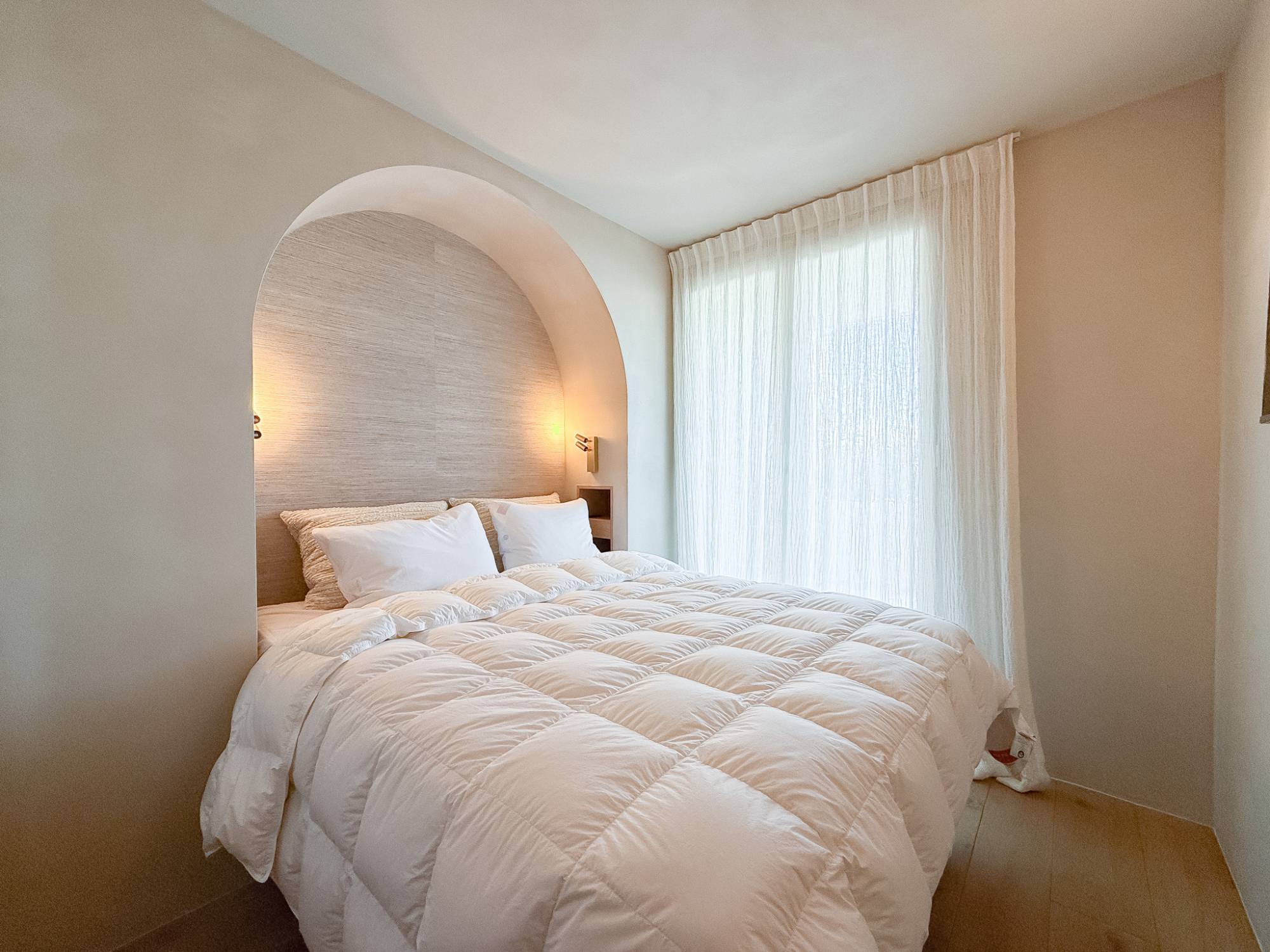 De grote ramen en open ruimtes zorgen voor een overvloed aan natuurlijk licht, waardoor binnen- en buitenruimtes moeiteloos in elkaar overlopen. Het panoramische uitzicht op de glinsterende zee en de luxe jachten vormt het stralende middelpunt van de woning. Het interieur straalt verfijning uit met een neutraal kleurenpalet, strakke lijnen en een vloer van authentieke Franse eik die een tijdloze charme toevoegt.
