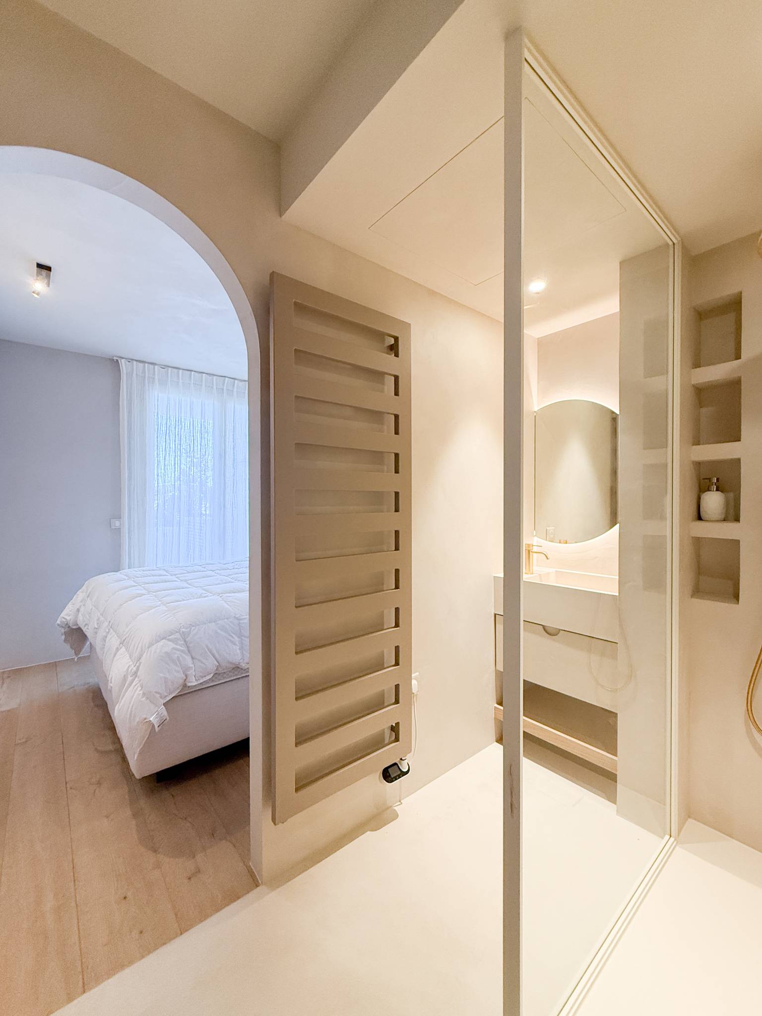 De 2 ruime slaapkamers zijn voorzien van ingebouwde kasten en en-suite badkamers, wat zorgt voor ultiem comfort en privacy. Elk detail van dit appartement is zorgvuldig ontworpen met hoogwaardige materialen en subtiele luxe afwerkingen, wat bijdraagt aan een serene en uitnodigende sfeer.