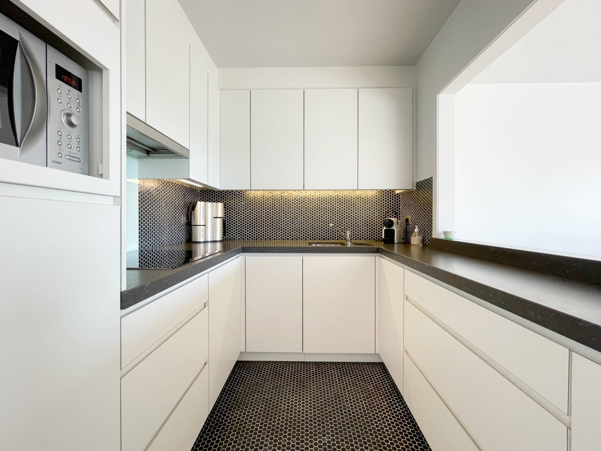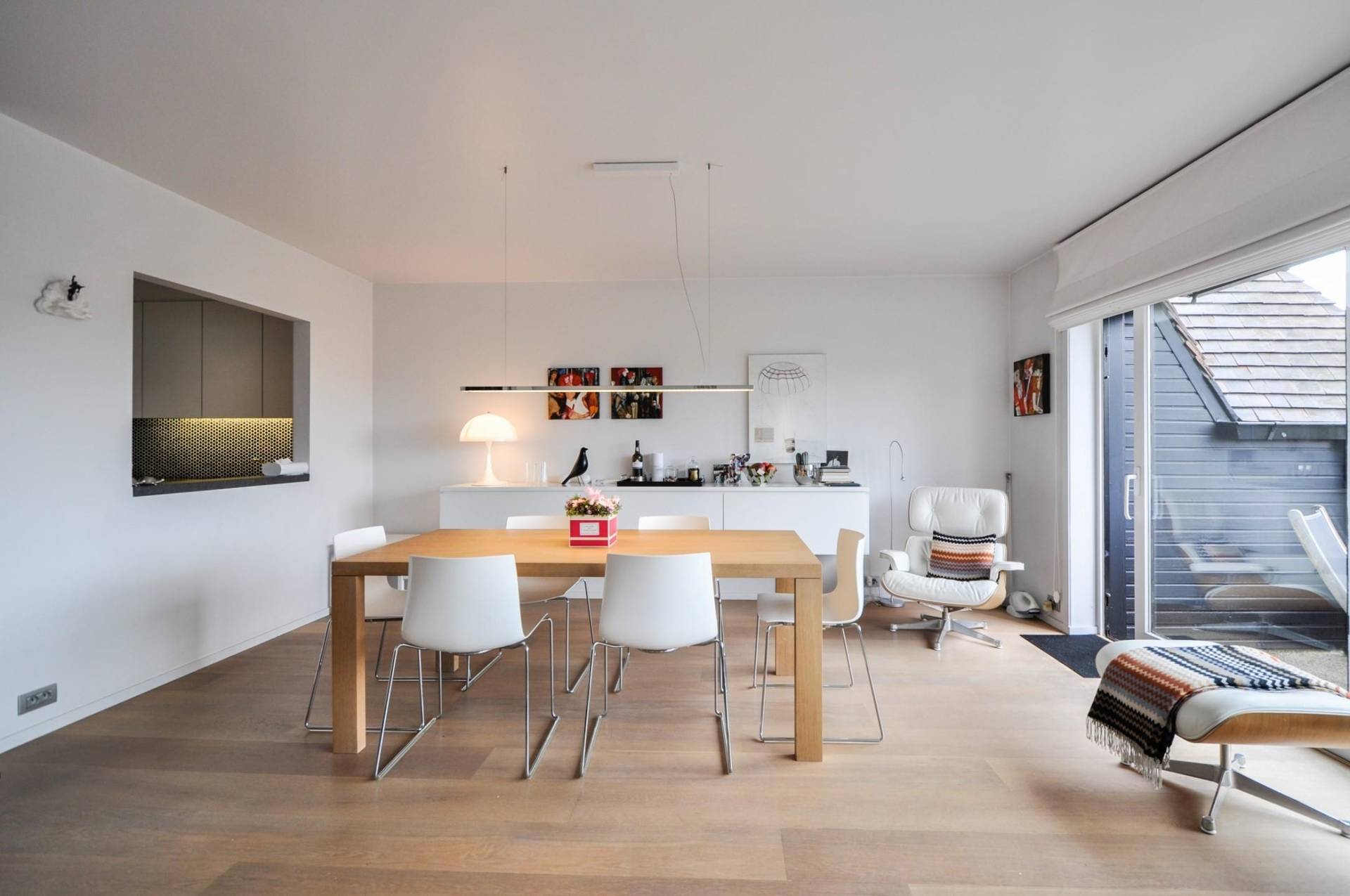Samenstelling: Inkomhall met gastentoilet en vestiaire. Zonovergoten woonkamer die uitgeeft op een terras over de volledige gevelbreedte van het appartement. Mooi open zicht op de omliggende villa's en het groen. Eethoek. Ingerichte keuken met doorgeefluik. Ruimte met wasmachine/droogkast.