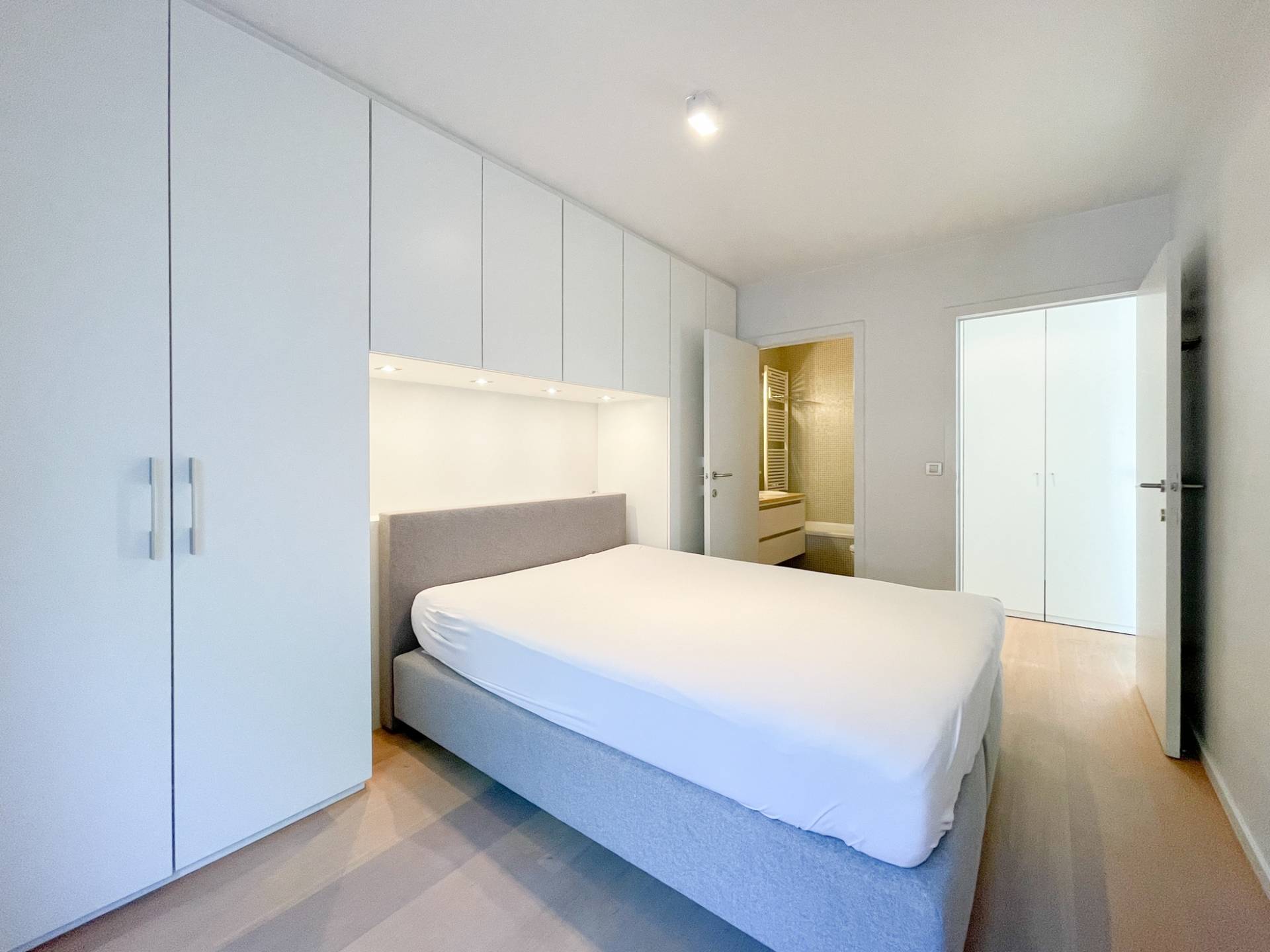 Achteraan bevindt er zich 1 mooie, ruime slaapkamer met ingemaakte kasten. Terras. Badkamer, voorzien van ligbad/douche, lavabo en toilet.
