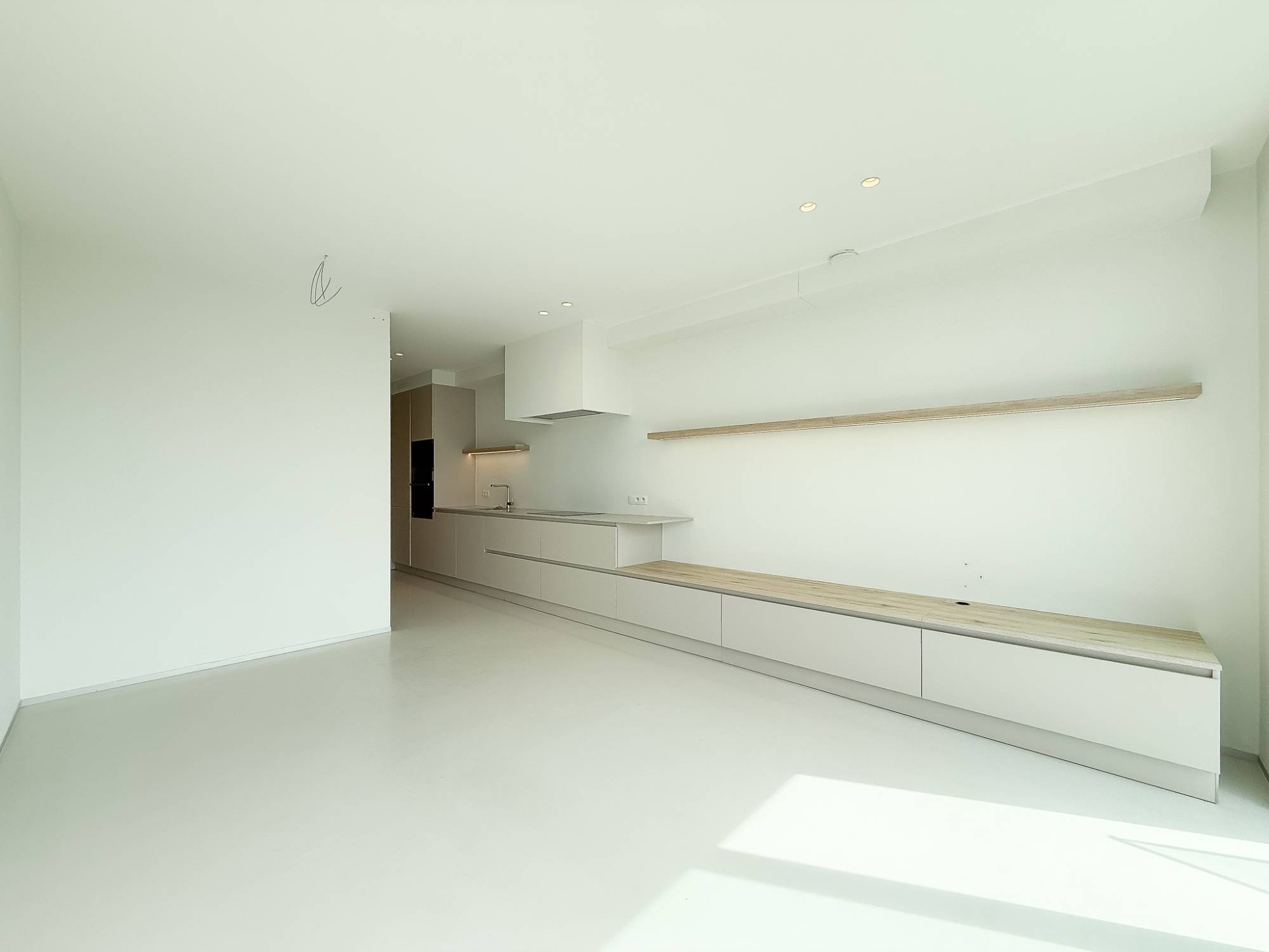 Verder beschikt het appartement over een aparte berging met aansluiting voor een wasmachine, een ruime slaapkamer met toegang tot het achterliggende terras en een moderne badkamer met inloopdouche en lavabo. Daarnaast is er een apart toilet en een private kelder. Algemene onkosten zijn inbegrepen. Een ideale plek om zorgeloos te genieten van een stijlvolle woonomgeving.