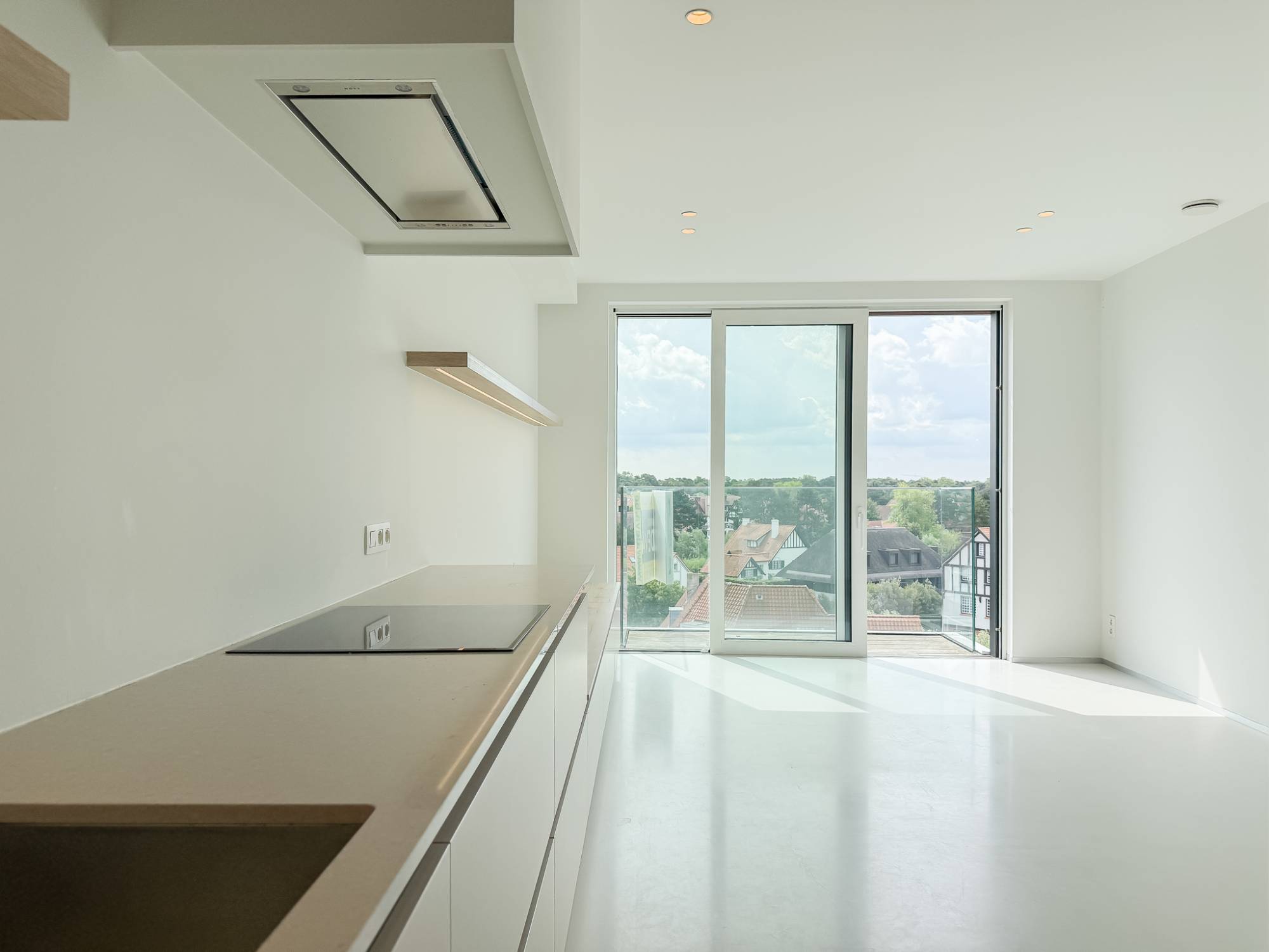 Dit recente en smaakvol ingerichte appartement op de Kustlaan biedt een prachtig uitzicht over de villa’s van het Zoute. De gezellige, zonnige woonkamer geeft uit op een zuidgericht terras en sluit aan op een open, volledig uitgeruste keuken.