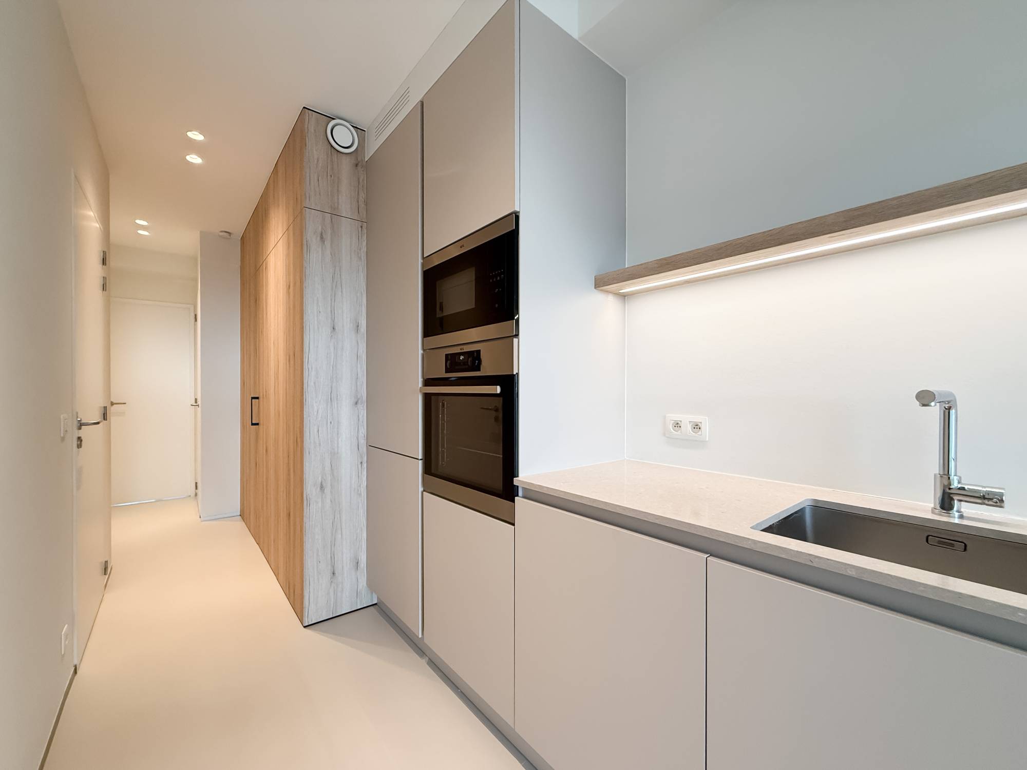 Dit recente en smaakvol ingerichte appartement op de Kustlaan biedt een prachtig uitzicht over de villa’s van het Zoute. De gezellige, zonnige woonkamer sluit aan op een open, volledig uitgeruste keuken.