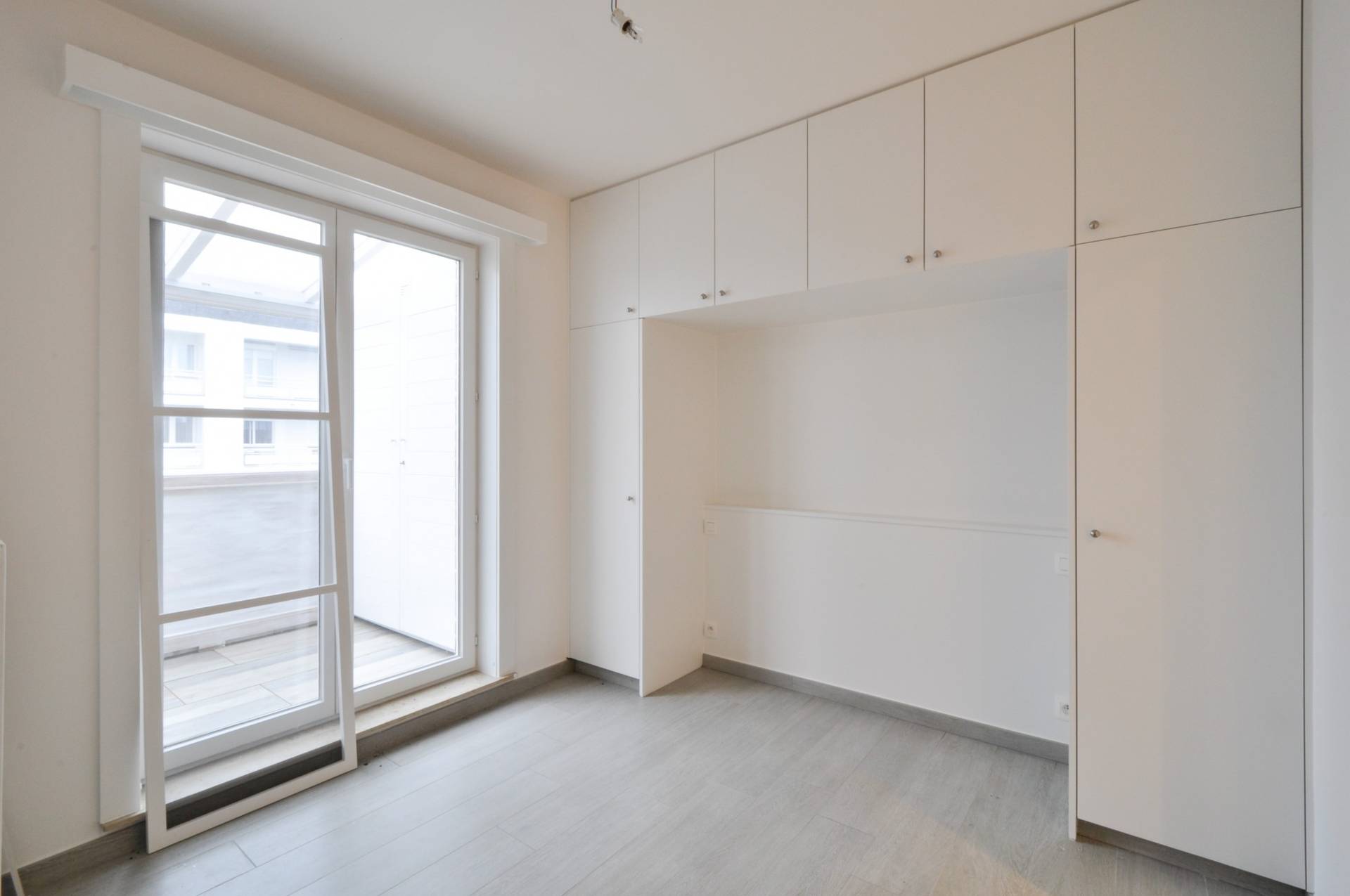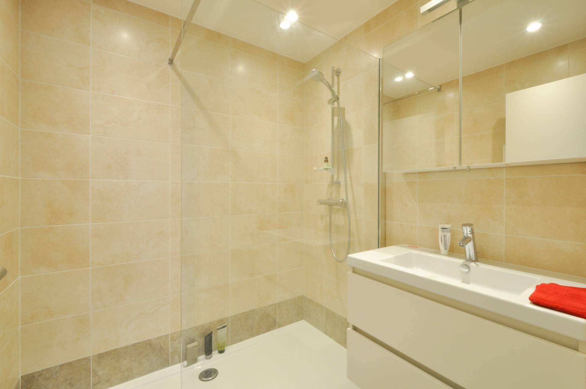 Afzonderlijke, ingerichte keuken, die uitgeeft op een overdekt terras aan de achterzijde. 1 Volwaardige slaapkamer met ingemaakte kasten. 1 Douchekamer met ruime douche en lavabo. Afzonderlijk toilet met ruimte voor wasmachine.