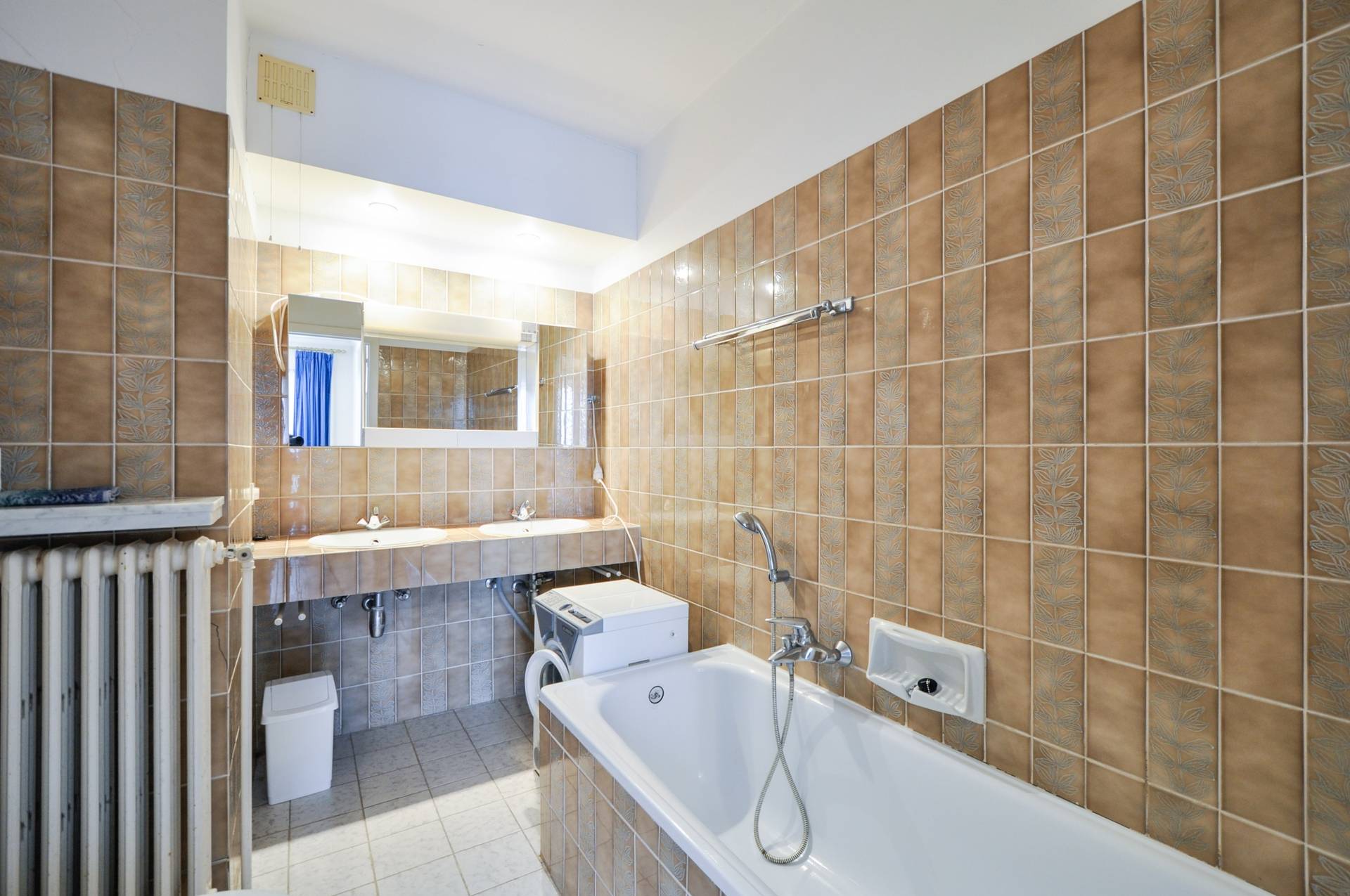1 slaapkamer met ingemaakte kasten en Zuidgericht terras. Aparte badkamer met ligbad, lavabomeubel.