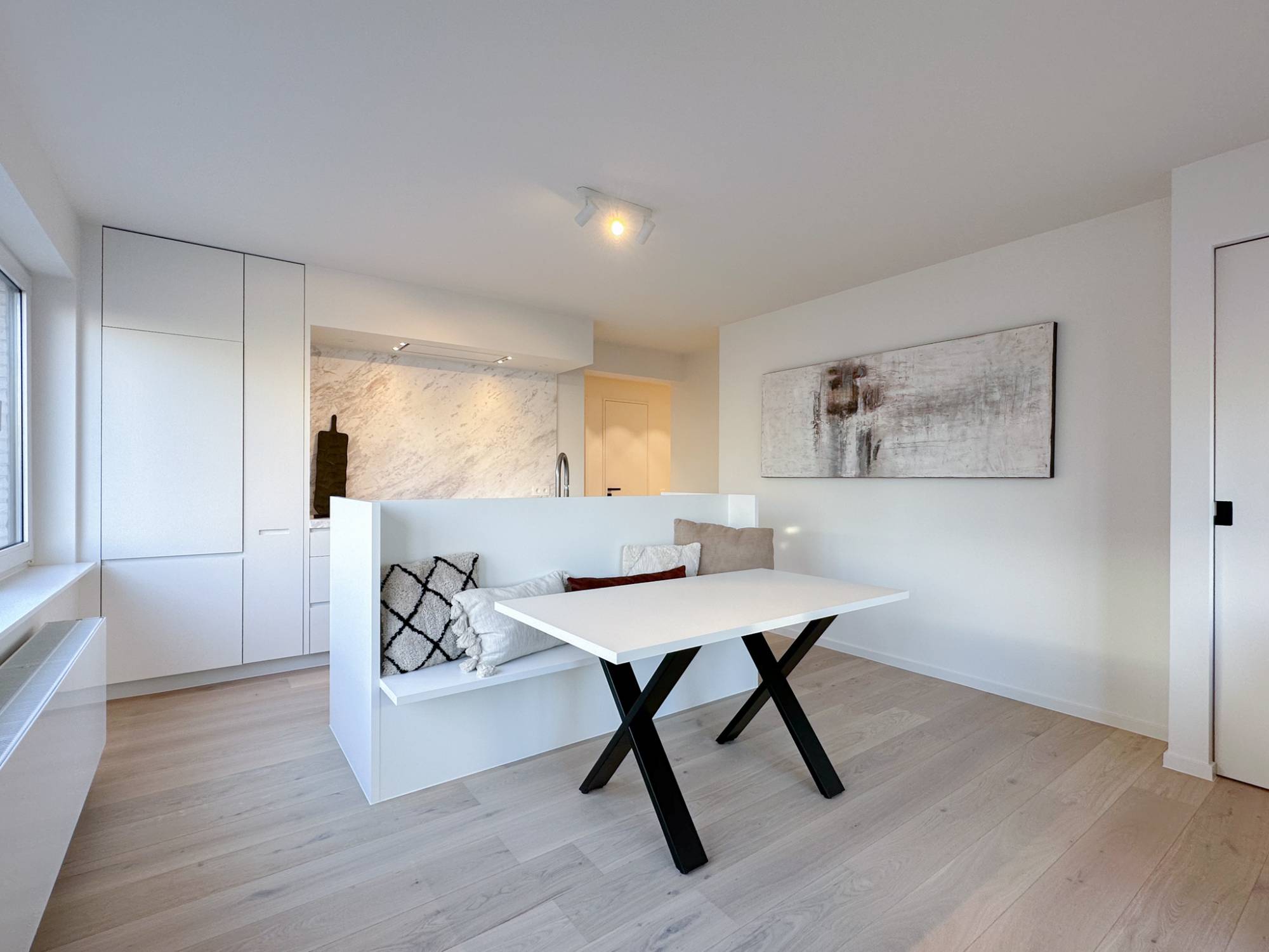In een rustige zijstraat nabij de Lippenslaan bevindt zich dit recent gerenoveerde hoekappartement, gekenmerkt door zijn strakke afwerking en overvloedig lichtinval. Het appartement is gemeubileerd, wat het volledig instapklaar maakt!
