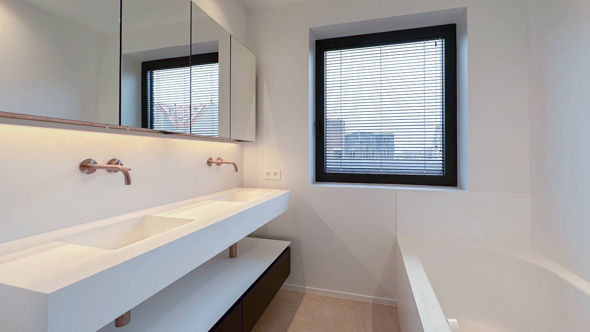 De grote ramen brengen het unieke buitengevoel naar binnen, voor de ultieme ervaring van rust en comfort. Ruime, op het zuiden gerichte terrassen vormen de perfecte verlenging van de parktuin.
