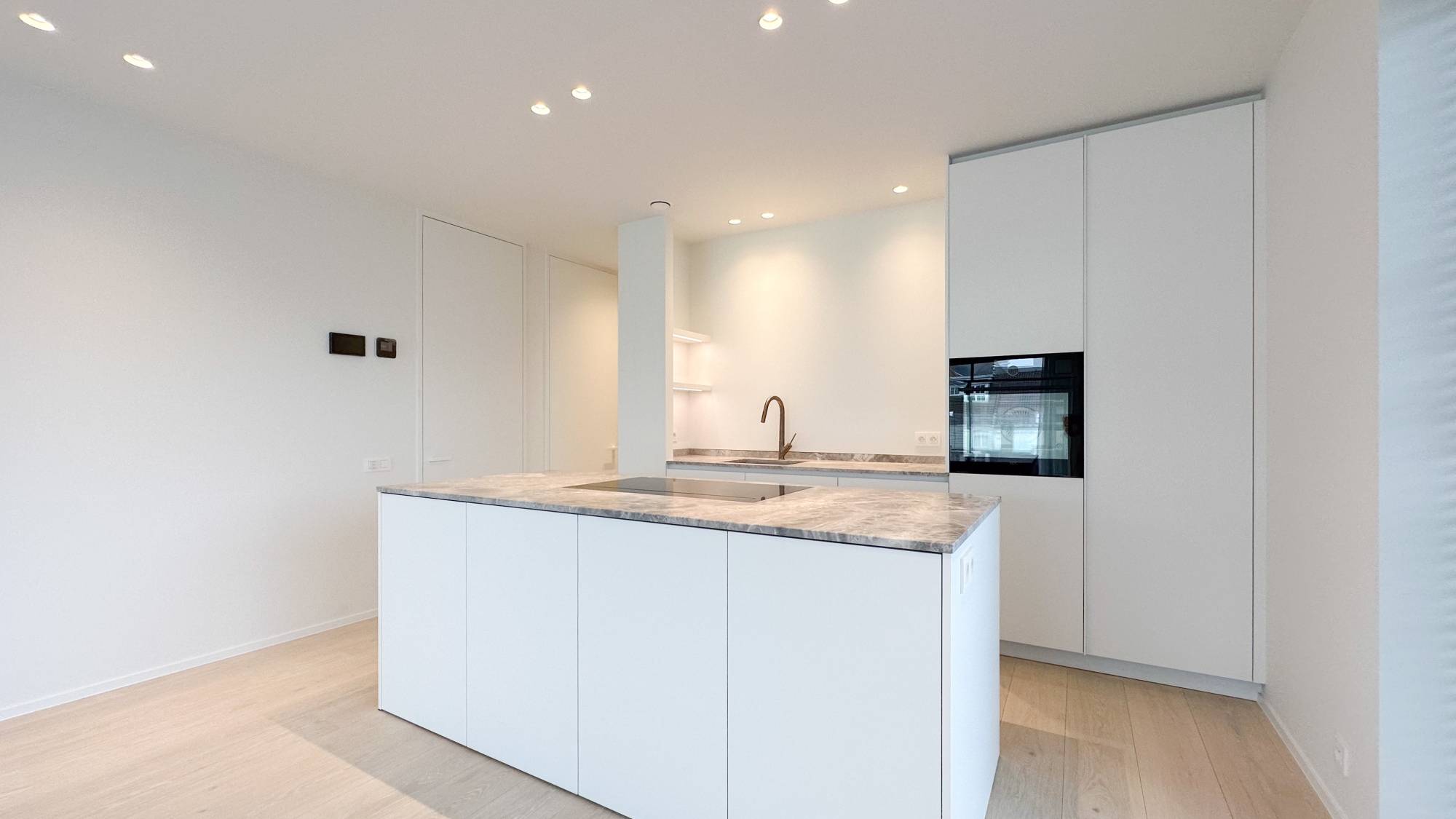 Indeling: Inkomhal met vestiaire en gastentoilet. Open keuken met kookeiland, grenzend aan de eetkamer en woonkamer die uitkomen op het terras. De eerste slaapkamer beschikt over een ensuite badkamer met ligbad, dubbele wastafel en toilet, en biedt ook uitzicht op het groen. De tweede slaapkamer heeft een ensuite doucheruimte. Naast de keuken is er een berging met aansluitingen voor wasmachine en droogkast, en een condensatieketel. Het appartement is uitgerust met ingebouwde kasten en vloerverwarming.
