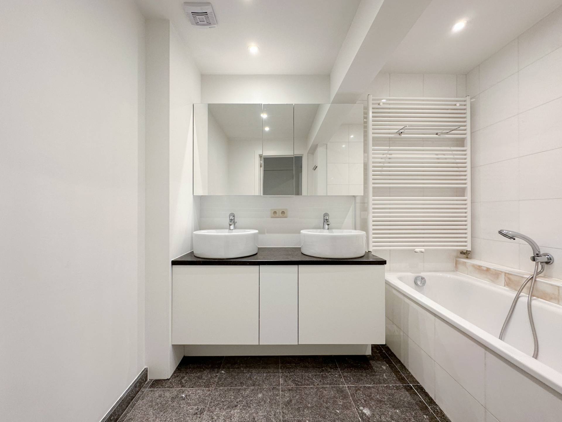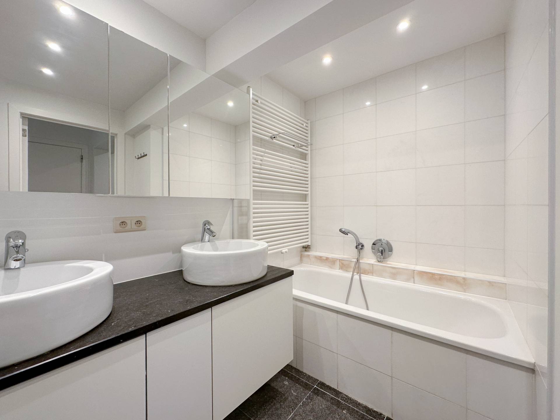 Luxueuze badkamer met bad, dubbele lavabo en toilet. Douchekamer met douche, lavabo en toilet.