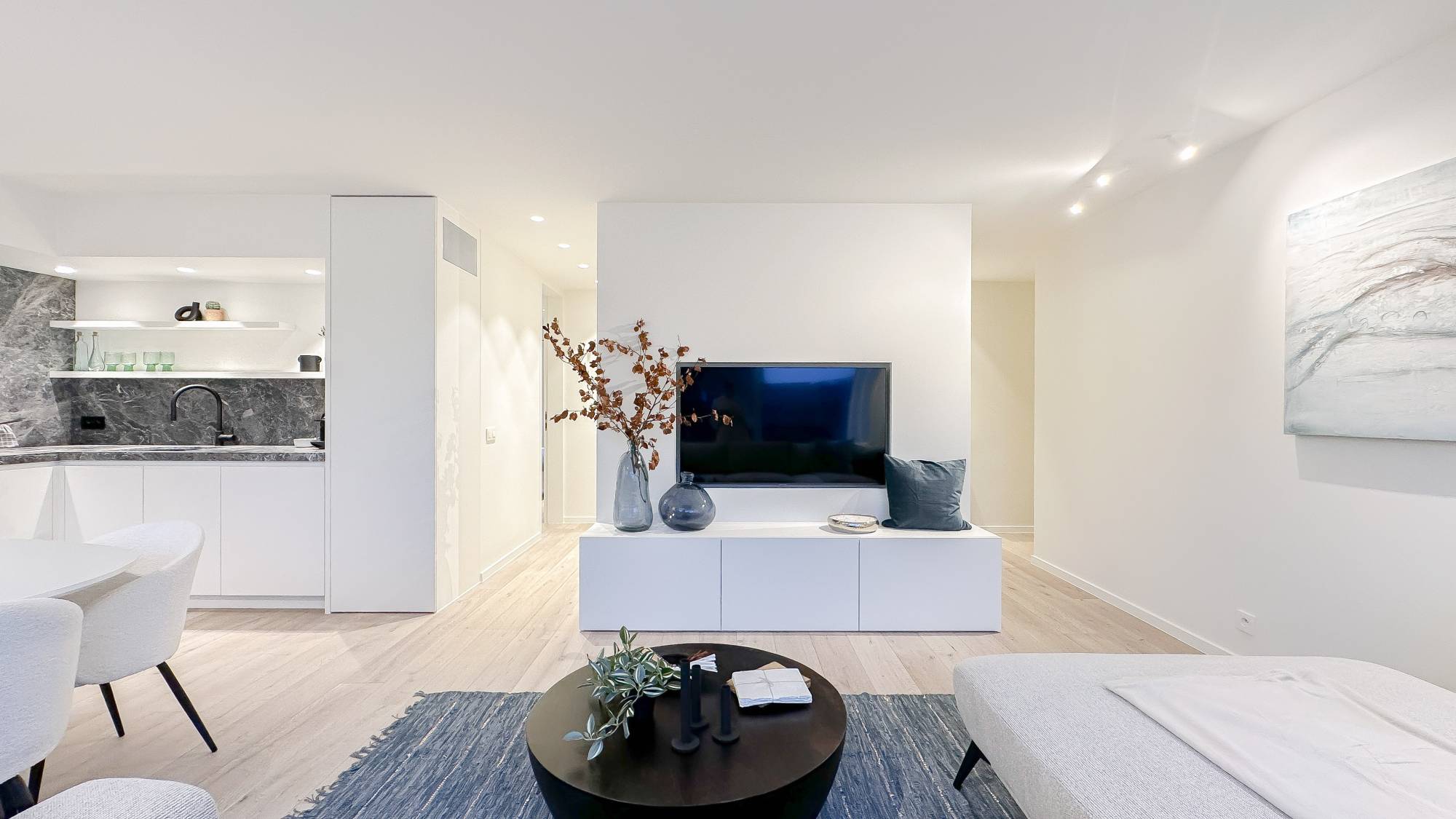 Indeling: Bij binnenkomst verwelkomt de inkomhal u met een gastentoilet. De lichtrijke leefruimte, met een indrukwekkende gevelbreedte, sluit naadloos aan op een moderne open keuken, uitgerust met alle hedendaags comfort. De gezellige eethoek leidt naar een prachtig terras van maar liefst 27m², waar u geniet van zijdelings zeezicht en volop zon.