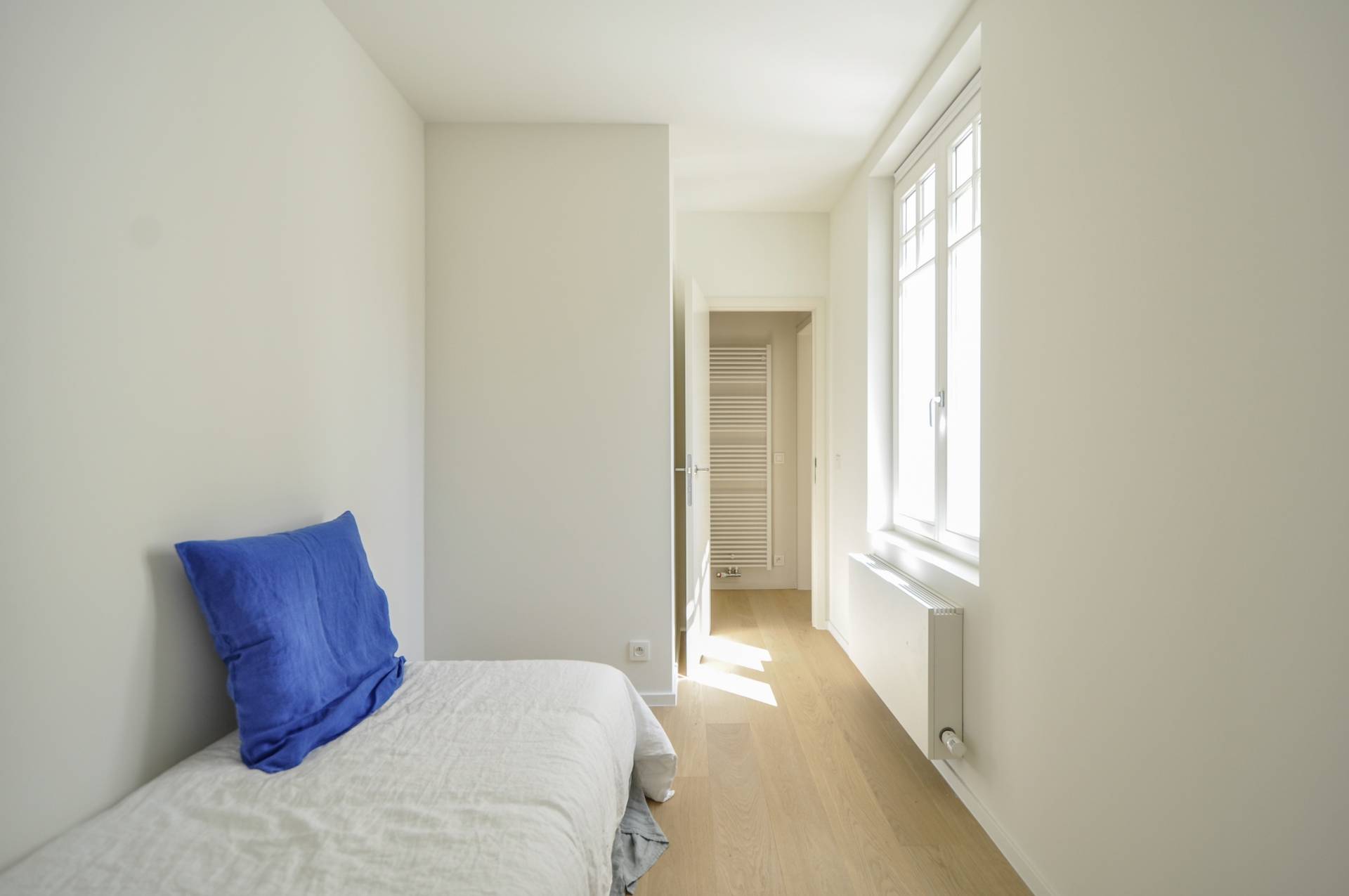 Samenstelling: Inkomhall met gastentoilet. Woonkamer met aansluitend eethoek. Mooie erker die zicht biedt op de omliggende villa's. Terrasje. Open, ingerichte keuken. Er is 1 hele ruime, lichtrijke slaapkamer met ingemaakte kasten. Mogelijkheid tot het plaatsen van een wasmachine. 2e slaapkamer. Er is een douchekamer met douche en lavabo.