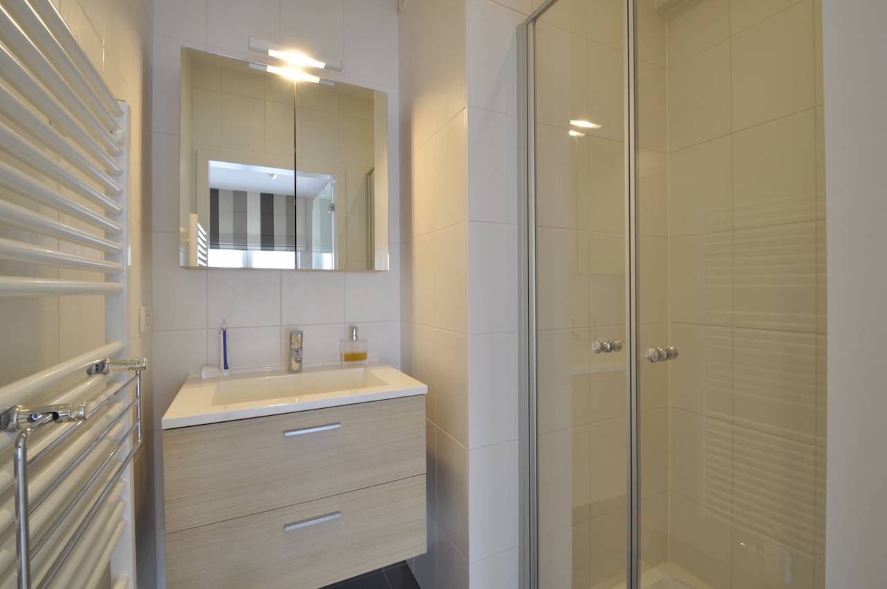 Samenstelling: Inkom met vestiaire en apart toilet. Gezellige living die uitgeeft op een zongericht terras. Open keuken. 2 Slaapkamers, met terrasje achteraan. 1 Luxueus ingerichte badkamer met lavabo, toilet en bad. 1 Douchekamer met douche en lavabo.