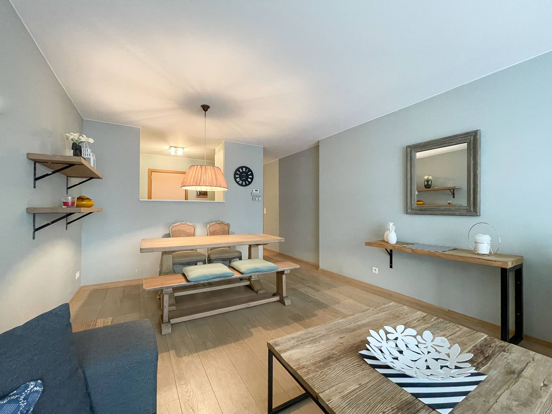 Hedendaags appartement, gemeubileerd, MET GARAGE, gelegen in een recente constructie in "Normandische stijl", in het commerciële centrum van Knokke...
