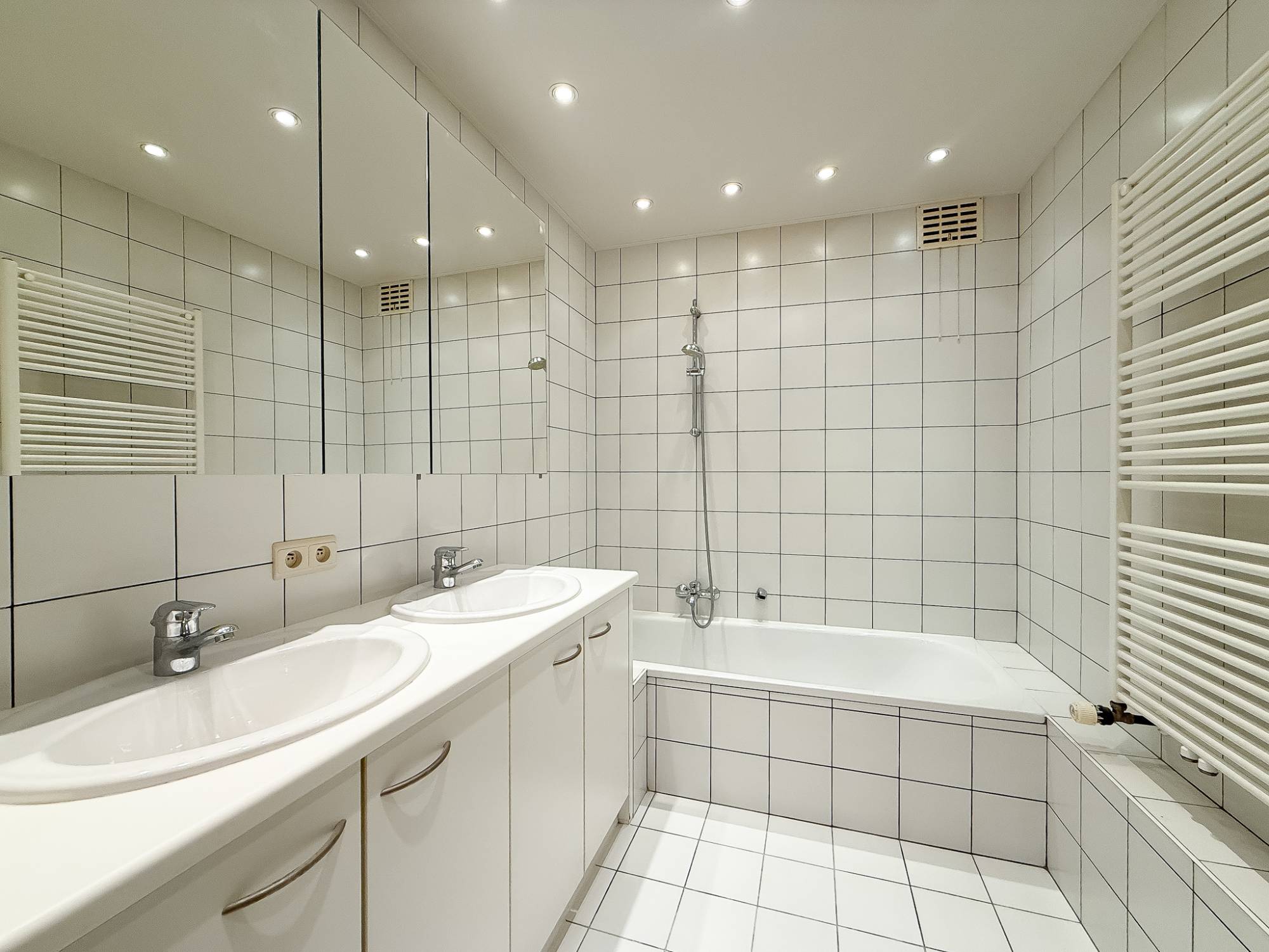 Er zijn 2 slaapkamers, waarvan de master bedroom is uitgerust met een volledig ingerichte badkamer met lavabo, ligbad en toilet. De tweede slaapkamer heeft een eigen douchekamer.