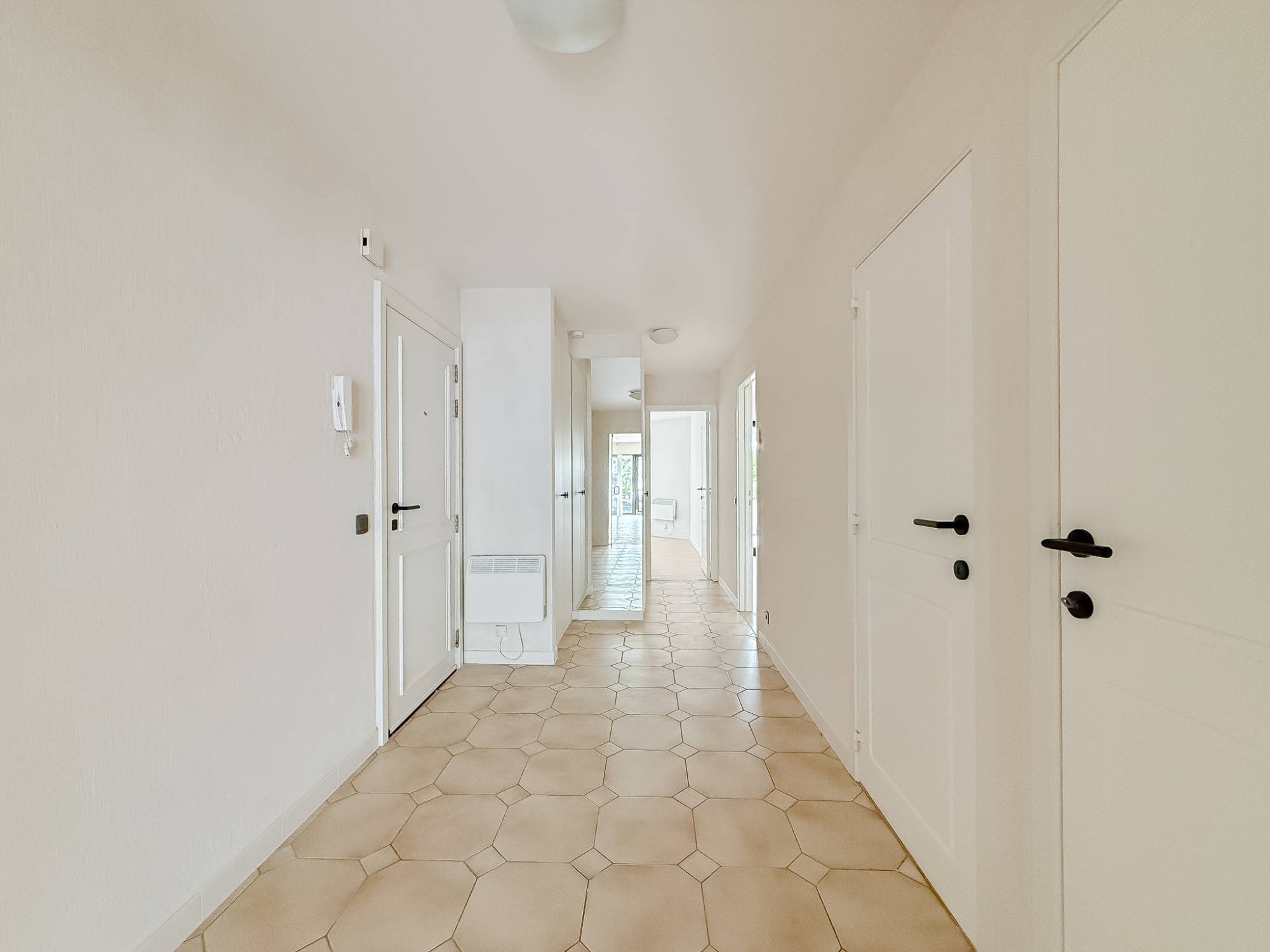 Het appartement beschikt over een ruime inkomhal met vestiaire en gastentoilet, een lichte woonkamer met eetruimte en open keuken. Het terras biedt een prachtig, rustig uitzicht.