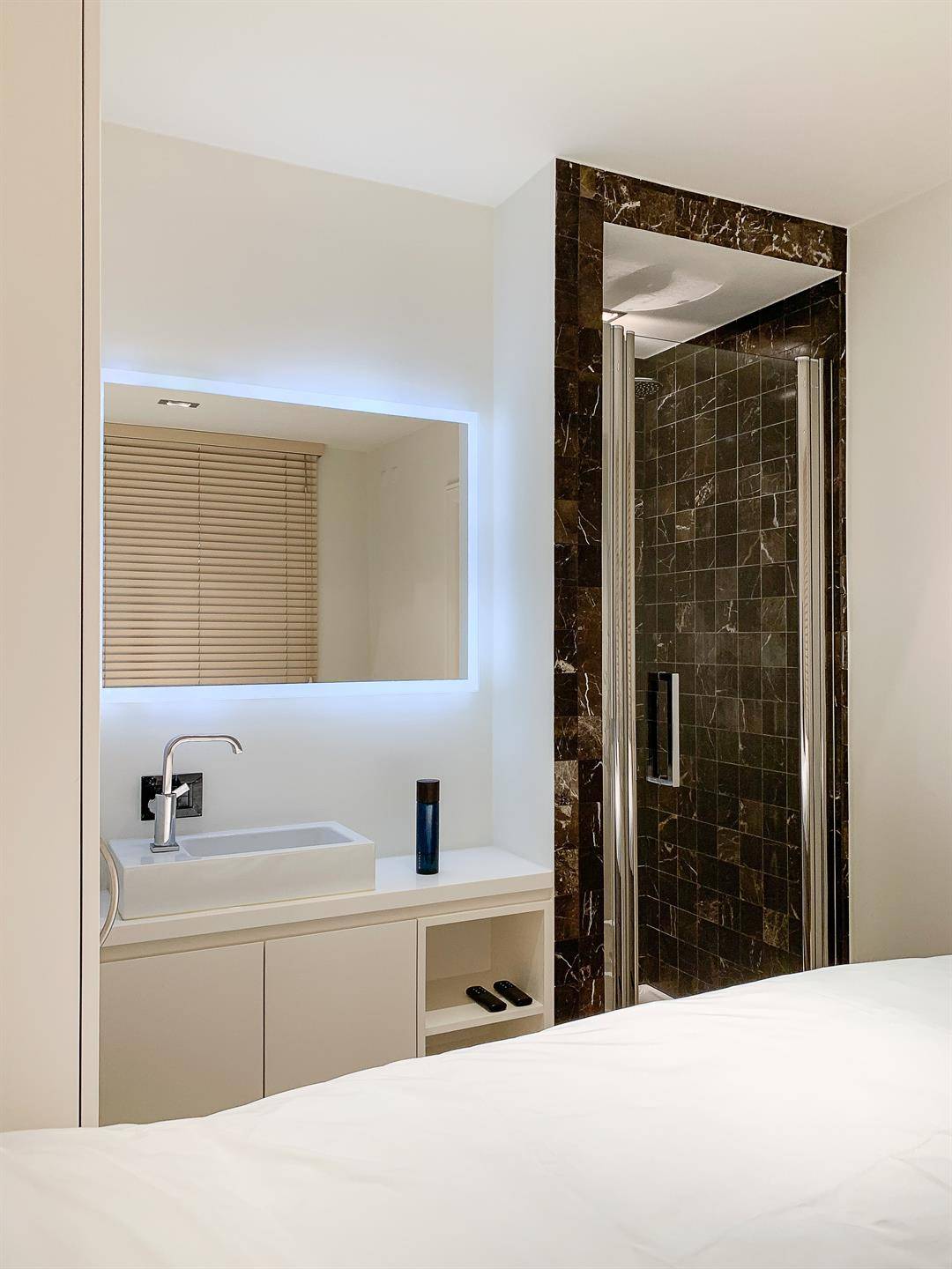 De masterbedroom heeft een grote dressing en ensuite luxe badkamer (ligbad). De tweede slaapkamer beschikt over een kleine badkamer met aparte doucheruimte. In de tweede slaapkamer wordt een designmeubel, bestaande uit een breed bureau en een inklapbaar bed (breedte 140 cm), geïnstalleerd.