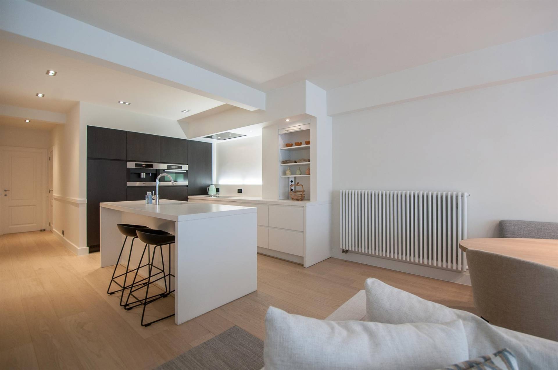 Samenstelling: Zonnige ruime en zeer aangename leef- en eetruimte met open zicht op groen, villa’s en exclusieve boetieks. Zuidgerichte patio met automatisch zonnescherm. Open keuken met keukeneiland en Miele toestellen.