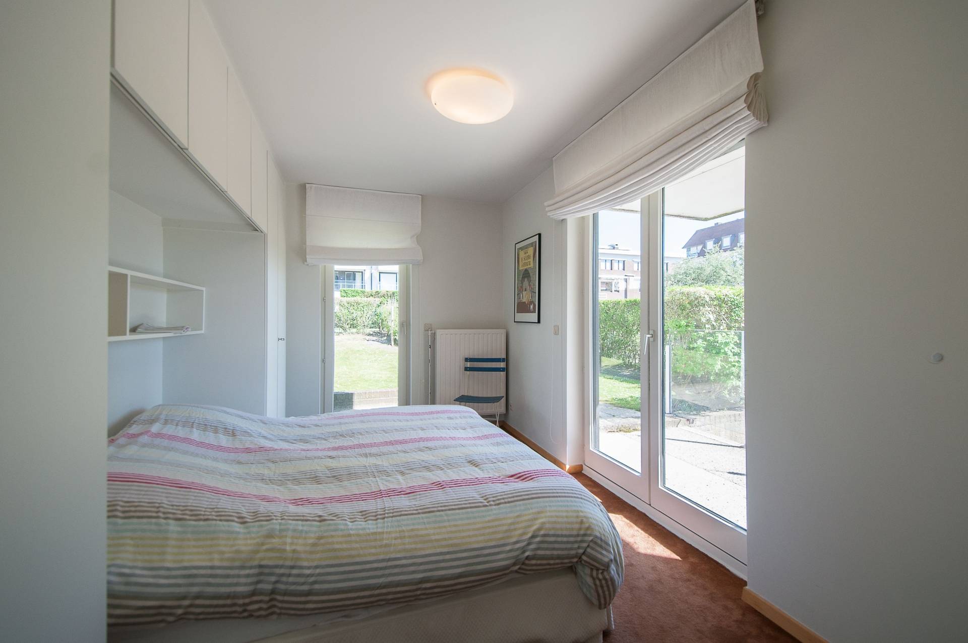 Er zijn 2 volwaardige slaapkamers achteraan, met ingemaakte kasten. Beide kamers geven uit op de tuin aan de achterzijde. 1 Complete badkamer. 1 Complete douchekamer.