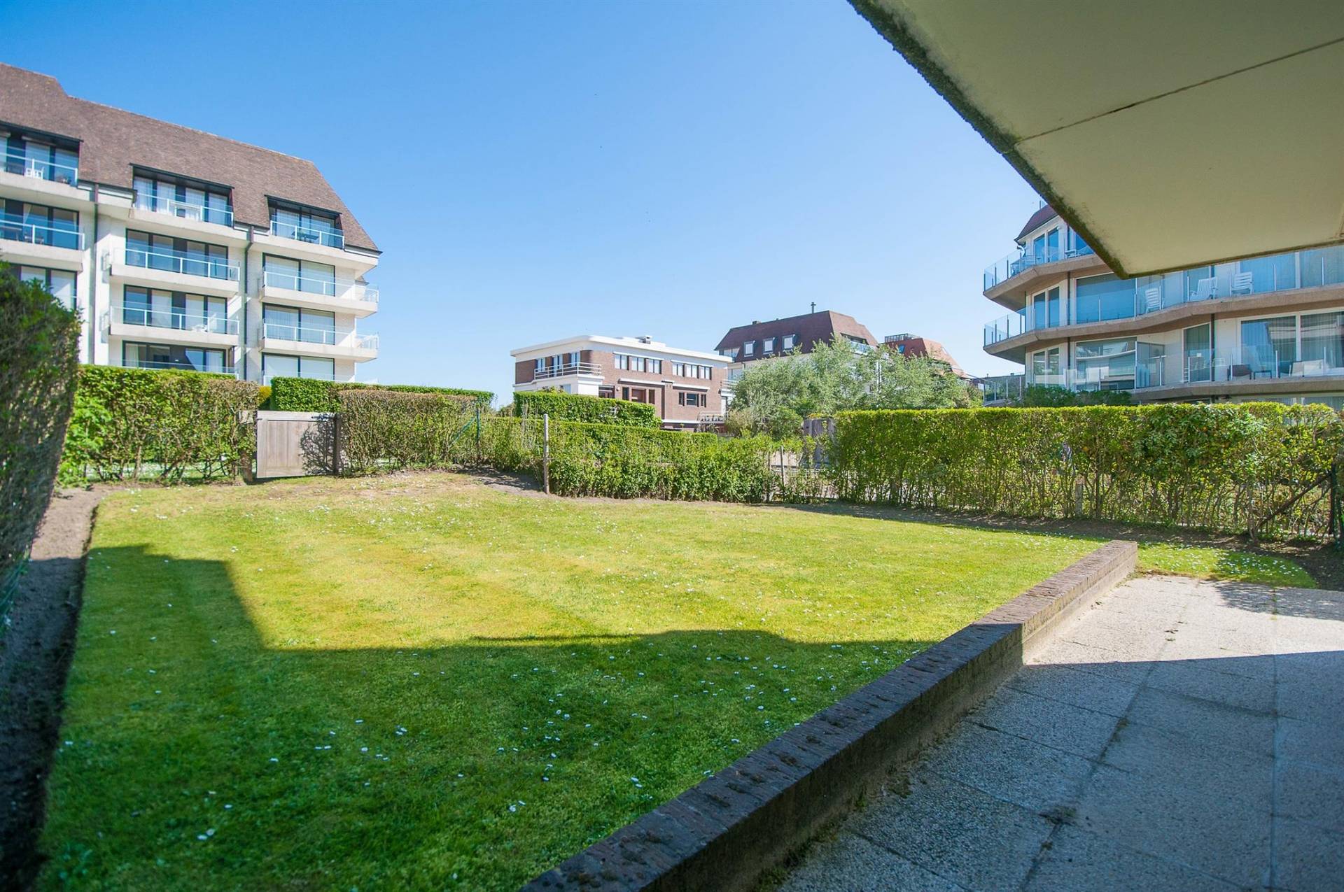 Zonnig TUINAPPARTEMENT met GARAGE, gelegen op een absolute TOPLIGGING aan de WANDELDIJK, in een verzorgde villaresidentie op de Kustlaan...