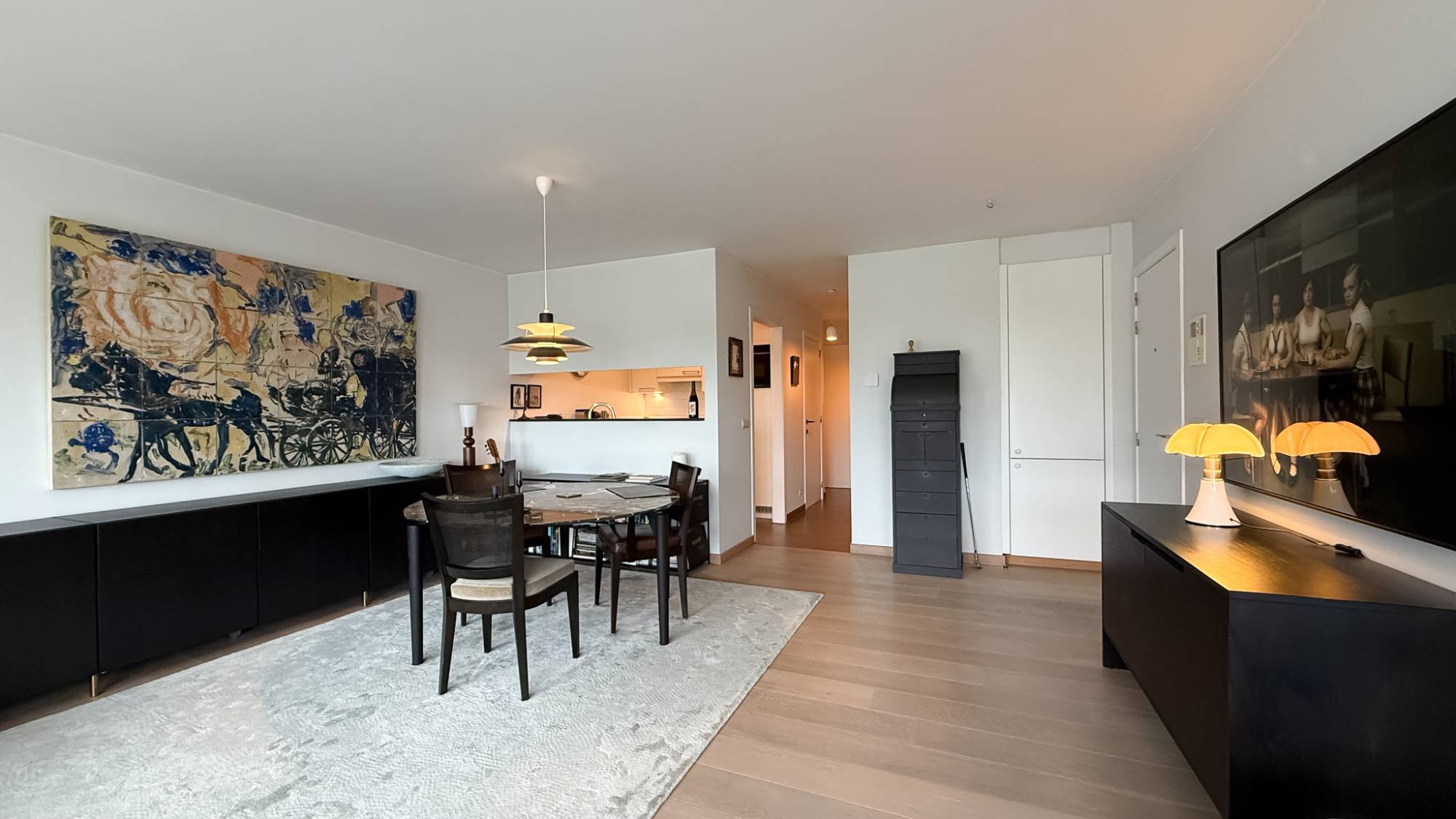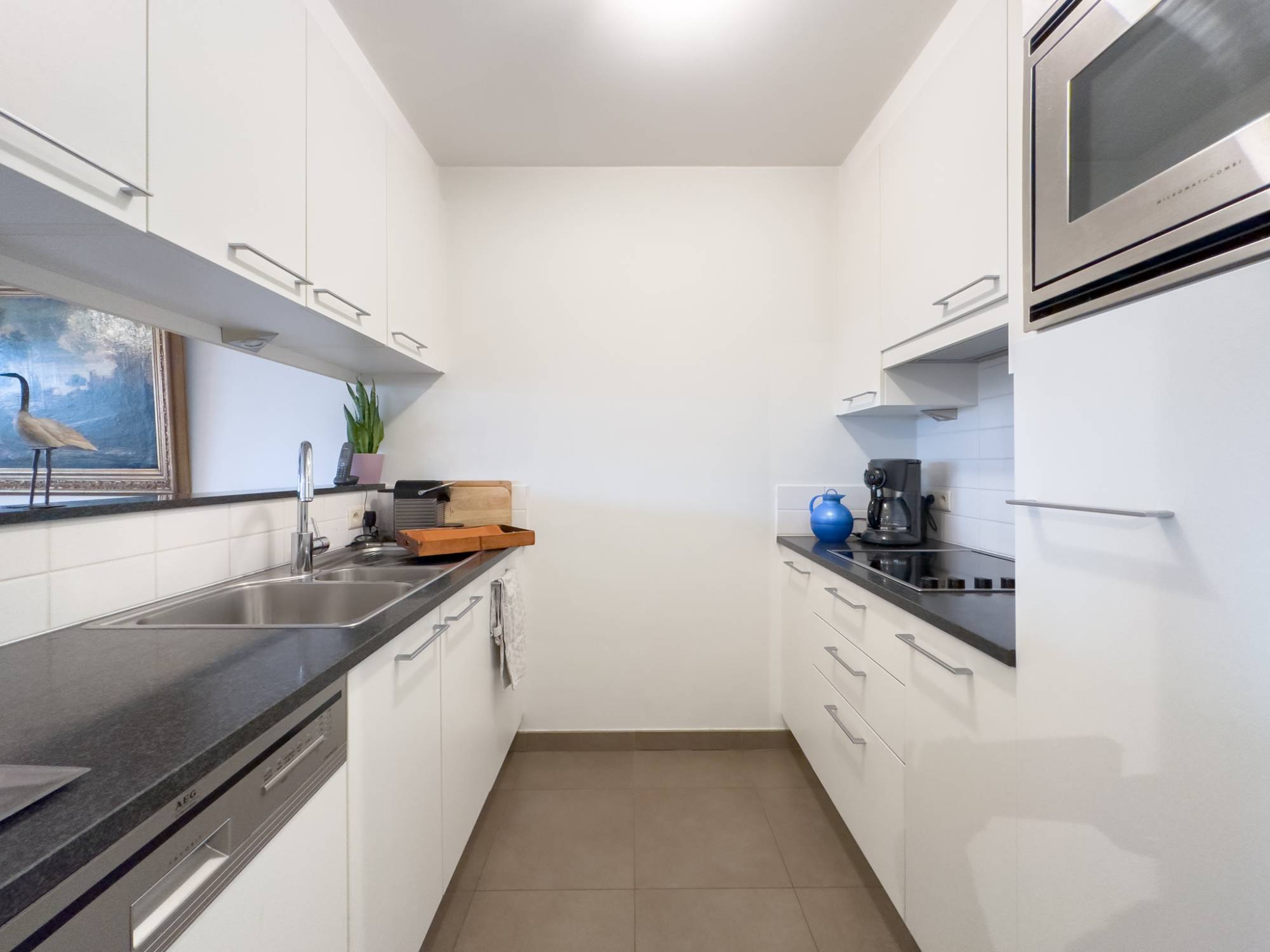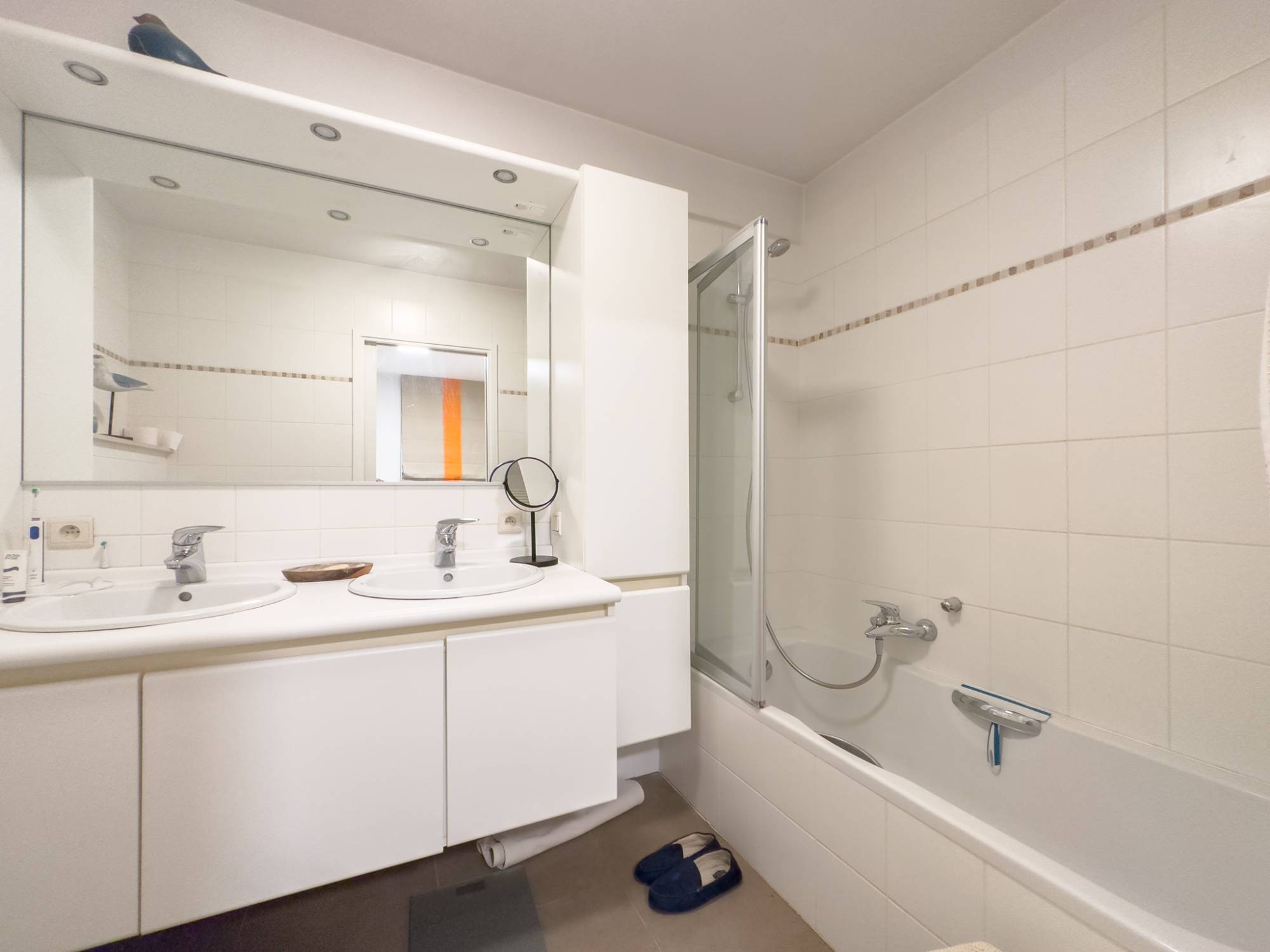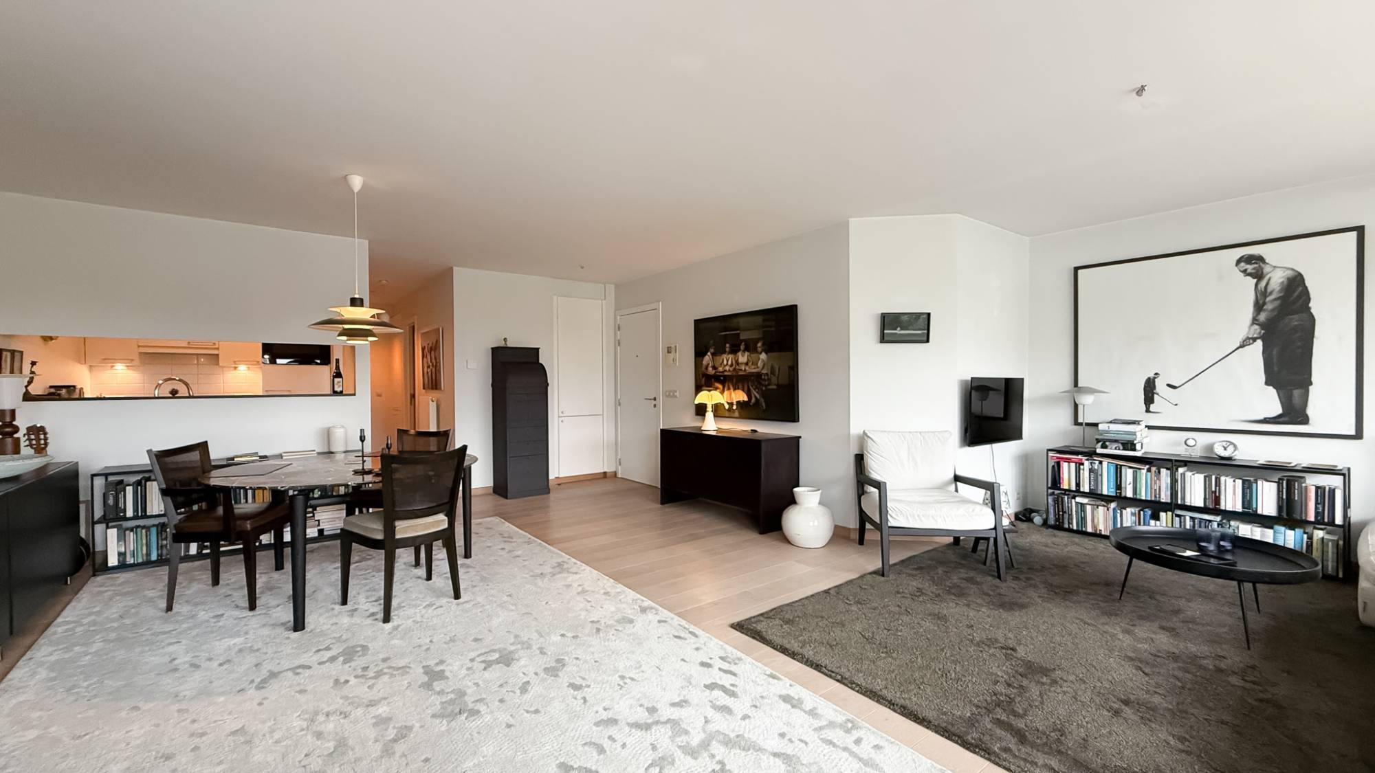 Ruime inkomhal met vestiaire en gastentoilet. De brede, zonnige woonkamer geniet van veel natuurlijke lichtinval en geeft uit op een zuidgericht terras met een prachtig zicht op de charmante villa’s van het Zoute. De halfopen keuken is functioneel ingericht en sluit harmonieus aan op de leefruimte. Verder beschikt het appartement over een praktische berging, twee volwaardige slaapkamers, een volledige badkamer en een douchekamer.