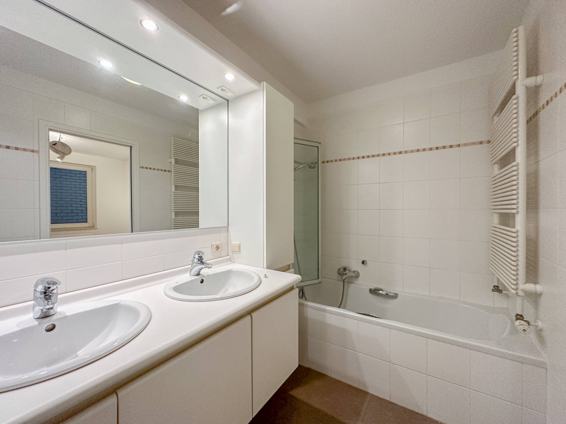 Samenstelling: Inkom met vestiaire en toilet. Ruime woonkamer met mooie gevelbreedte, die uitgeeft op een zonovergoten terras met prachtig uitzicht op de Zoute villa's. Half open keuken. Berging. 2 Slaapkamers. Complete badkamer. Douchekamer.