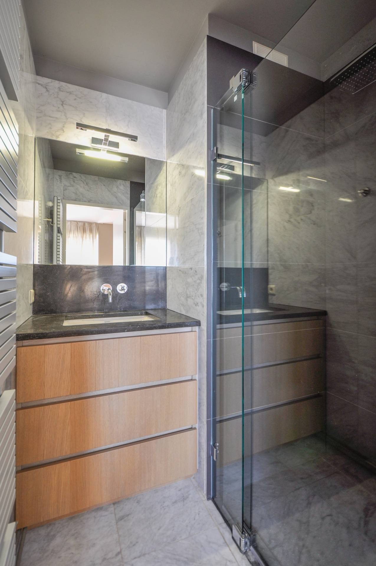 Achteraan bevinden er zich 2 slaapkamers, die beiden uitgeven op een Zuidgericht terras, en zicht op de minigolf. 2 Luxueuze douchekamers. Fietsenberging.