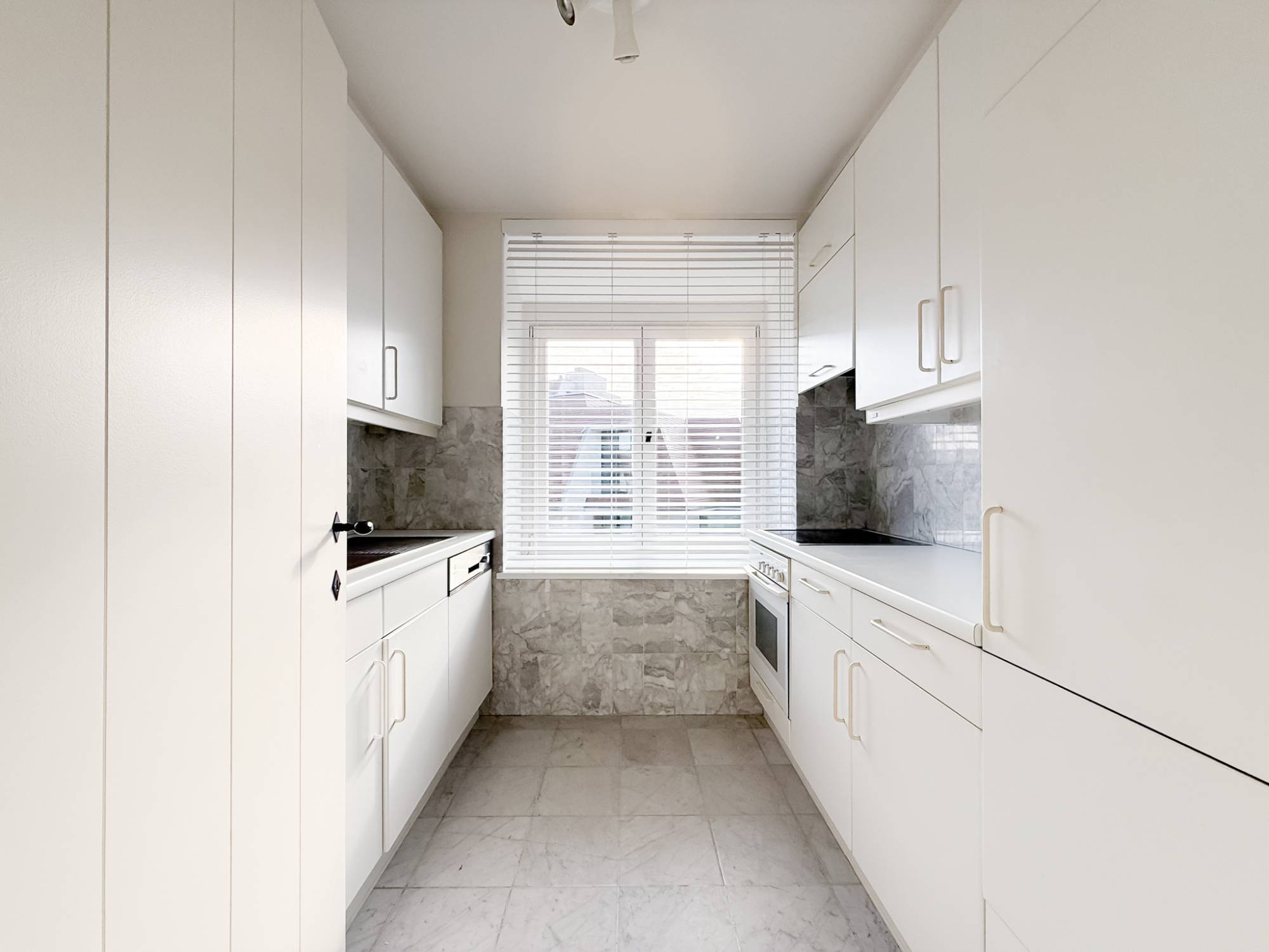 Het appartement beschikt over twee comfortabele slaapkamers met ingemaakte kasten en een badkamer met douche in bad en wasmachine. Gordijnen en verlichting zijn reeds voorzien.
