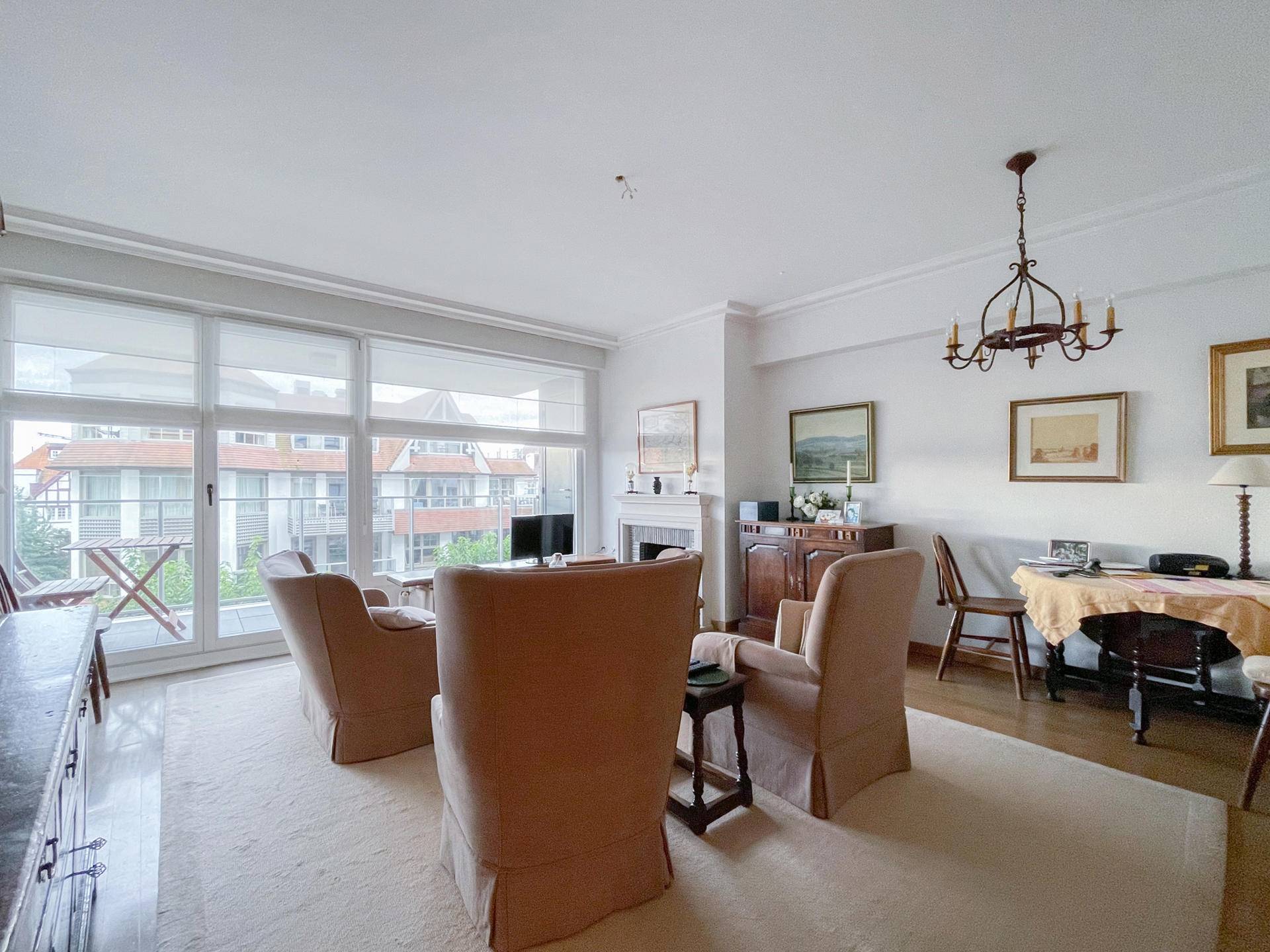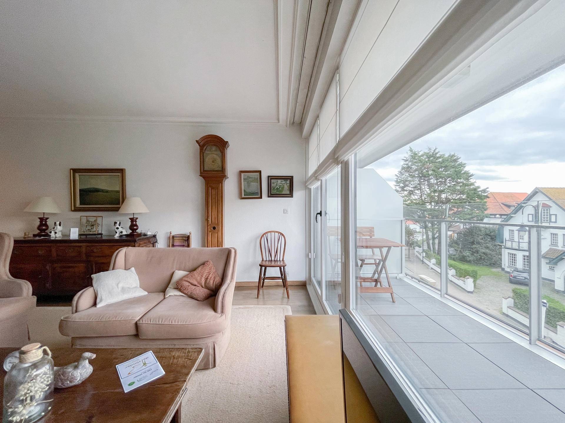 Het appartement bevindt zich op de 2e verdieping en beschikt over een bijzonder aangenaam Zuidgeoriënteerd terras met een mooi zicht op de villaresidenties van het Zoute.