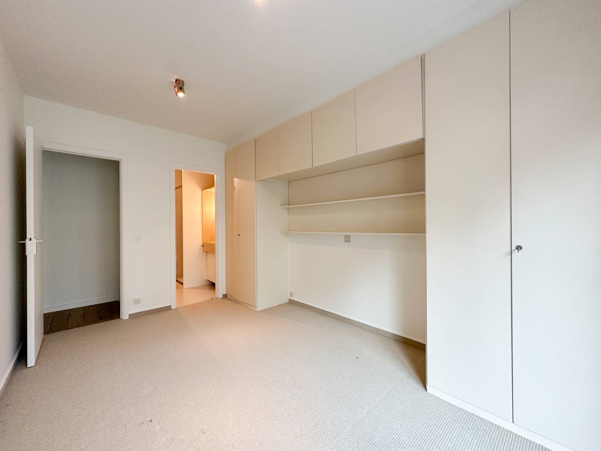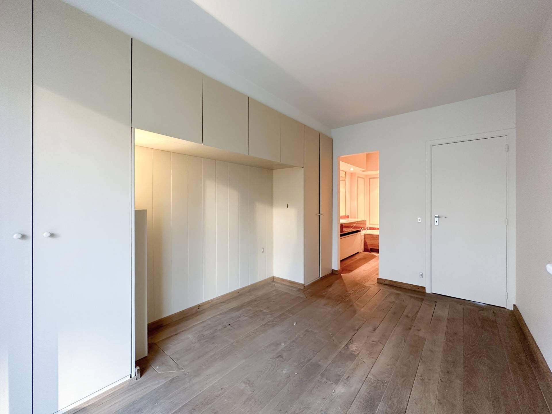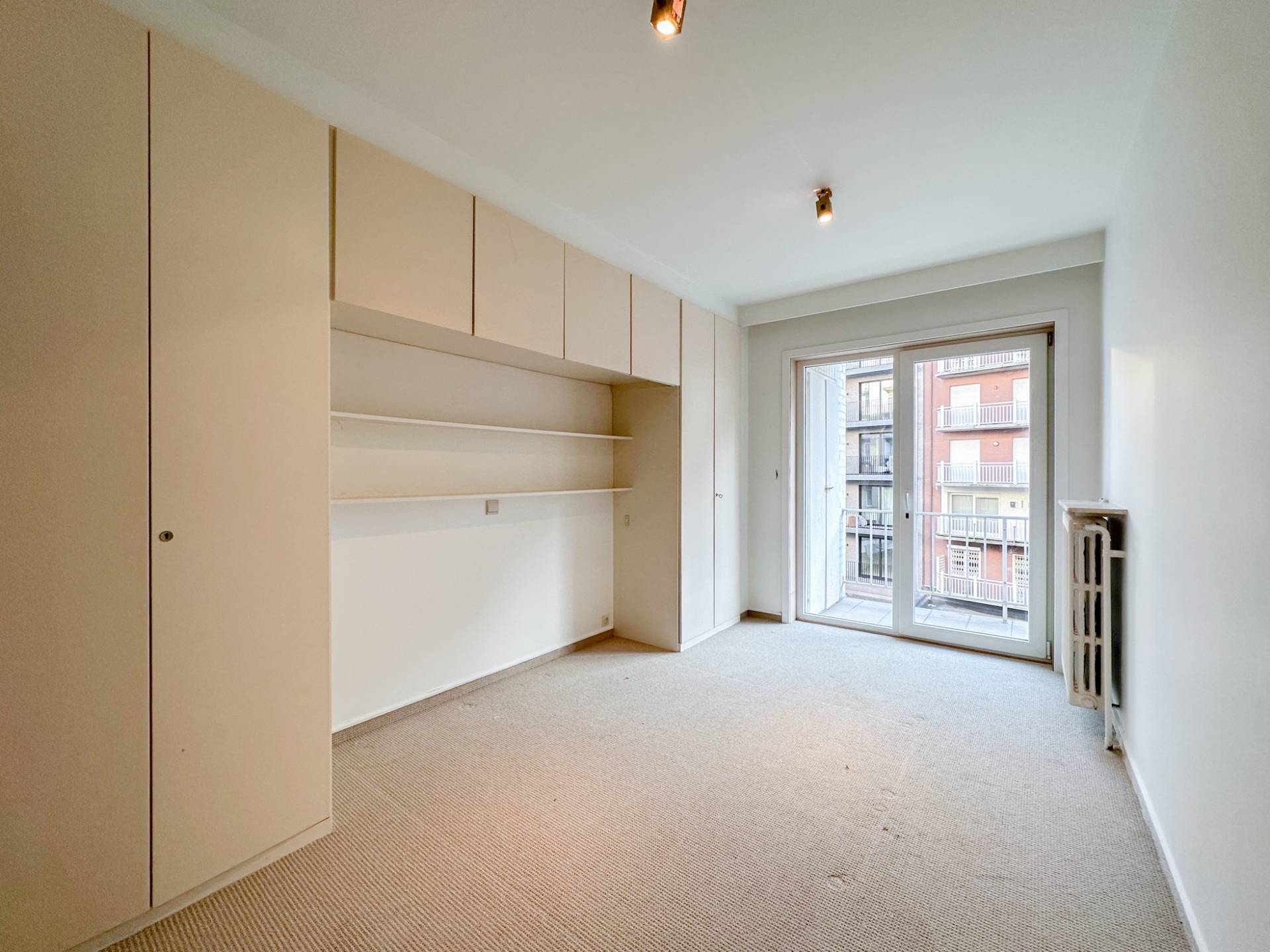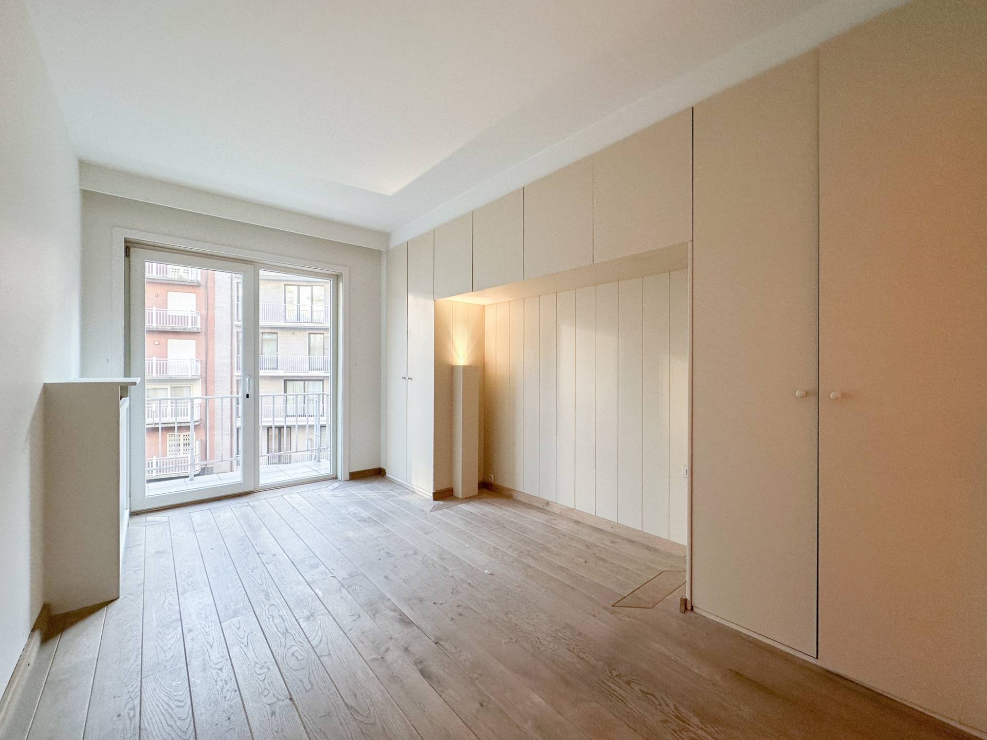 Achteraan bevinden er zich 2 volwaardige slaapkamers. 1 Luxueus ingerichte badkamer. Afzonderlijke ruimte met lavabomeubel en ingemaakte kast. Zonnig terras aan de achterzijde. Conciërge.