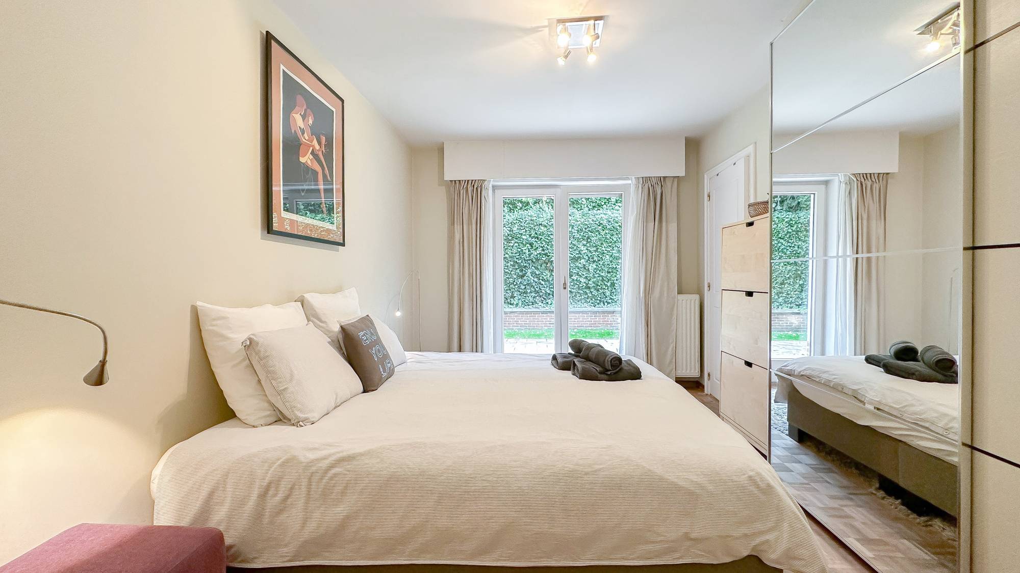 Er zijn 3 slaapkamers. De 3 kamers geven uit op het terras! Elke kamer beschikt over een eigen douchekamer. Berging.