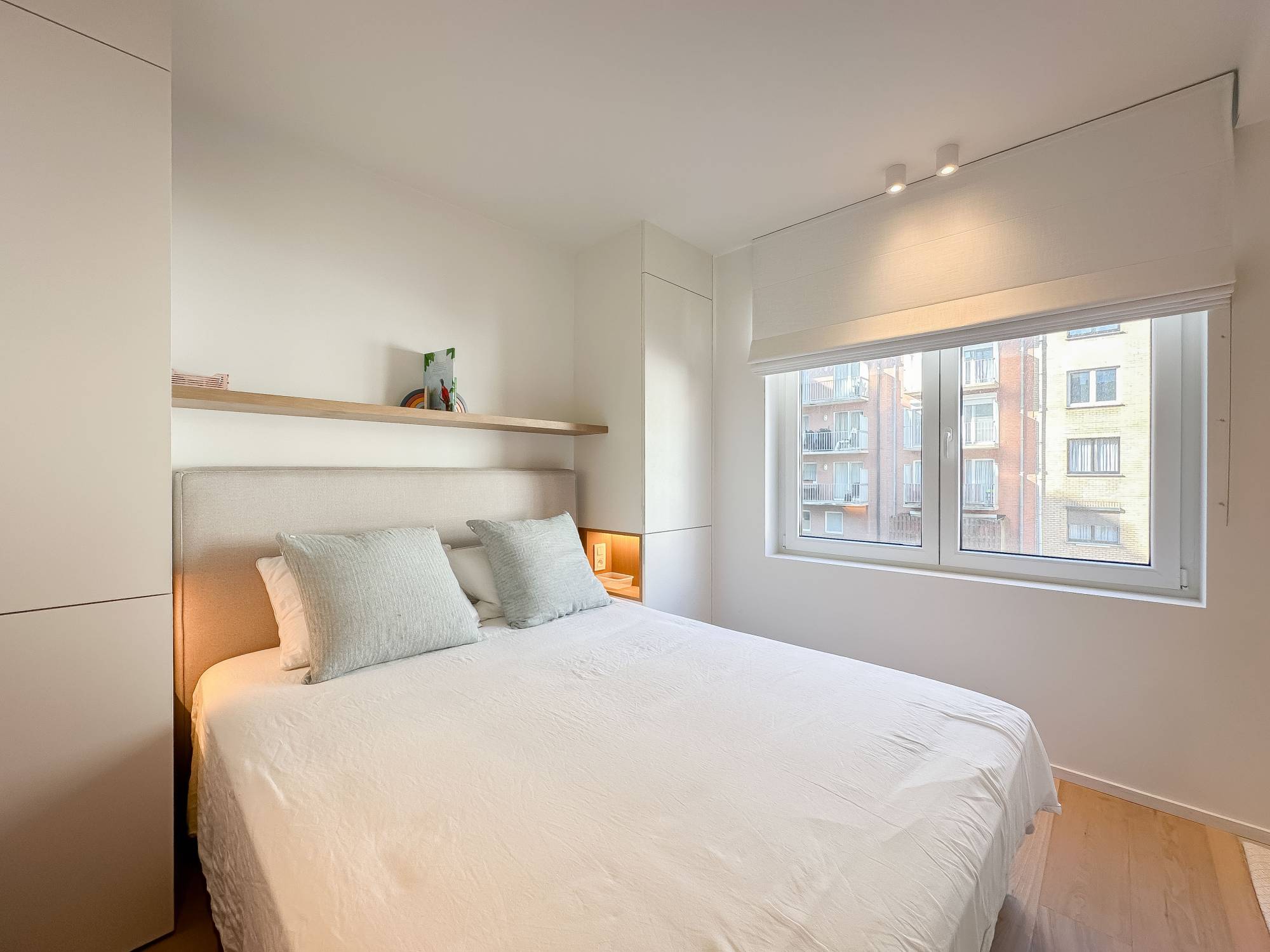 Dit prachtig afgewerkte appartement, volledig vernieuwd, bevindt zich op een toplocatie in het bruisende centrum van Knokke.