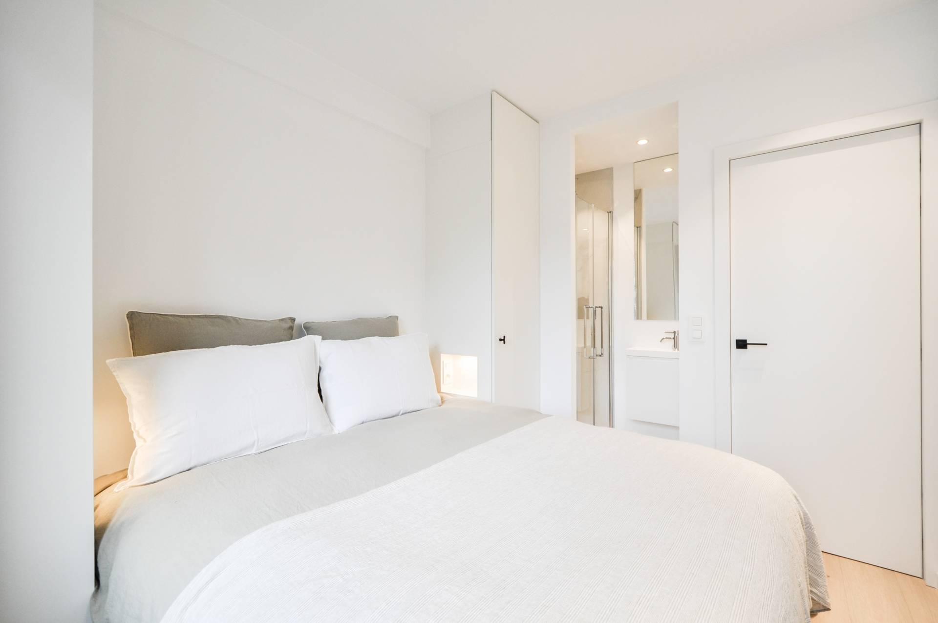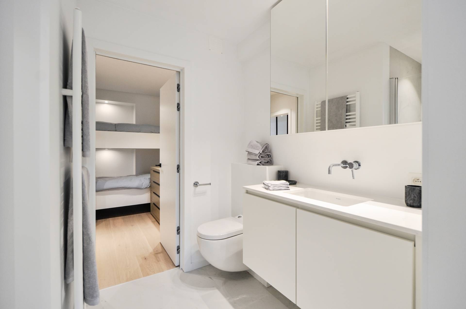 Er zijn 3 slaapkamers. 2 Slaapkamers beschikken over ingemaakte kasten. De 3e kamer is een kamer met een stapelbed. 1 Smaakvol ingerichte badkamer met douche, toilet en lavabomeubel. 1 Douchekamer met douche en lavabo.