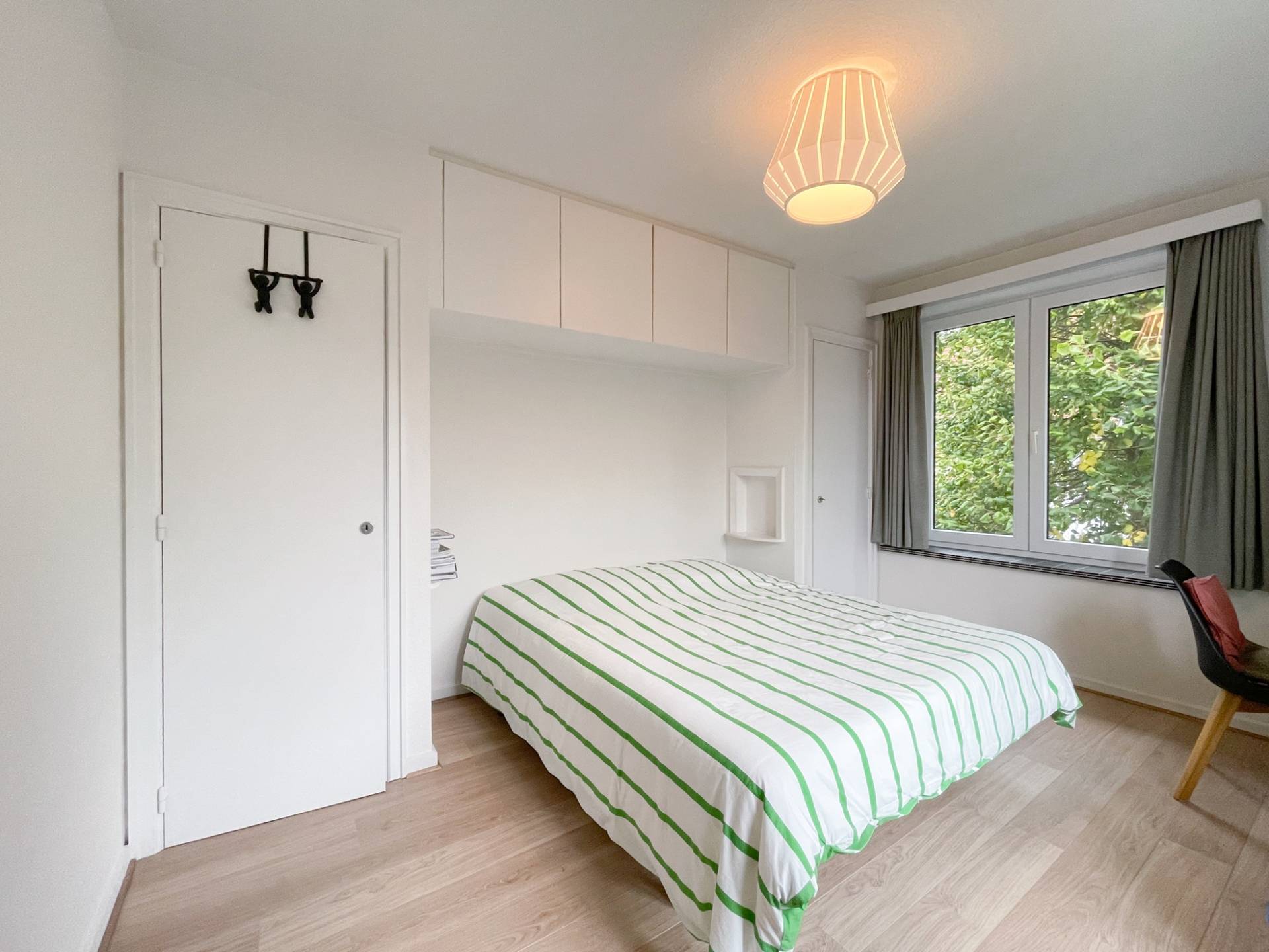 Samenstelling: Inkom met vestiaire en apart toilet. Aangename, zonnige woonkamer die uitgeeft op een RUIM TERRAS met zicht op het groen en de omliggende villa's. Aparte, praktisch ingerichte keuken. 3 lichtrijke, volwaardige slaapkamers. 1 Badkamer. 1 Douchekamer.