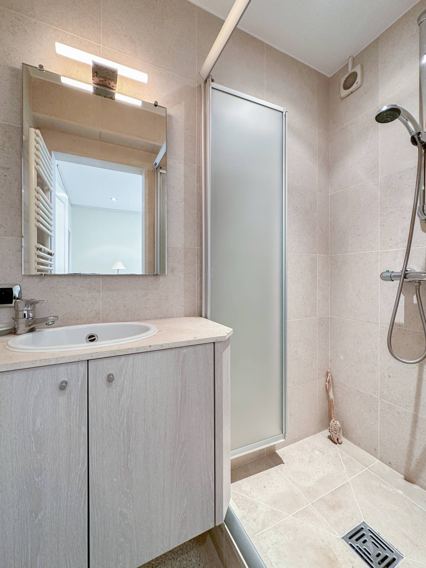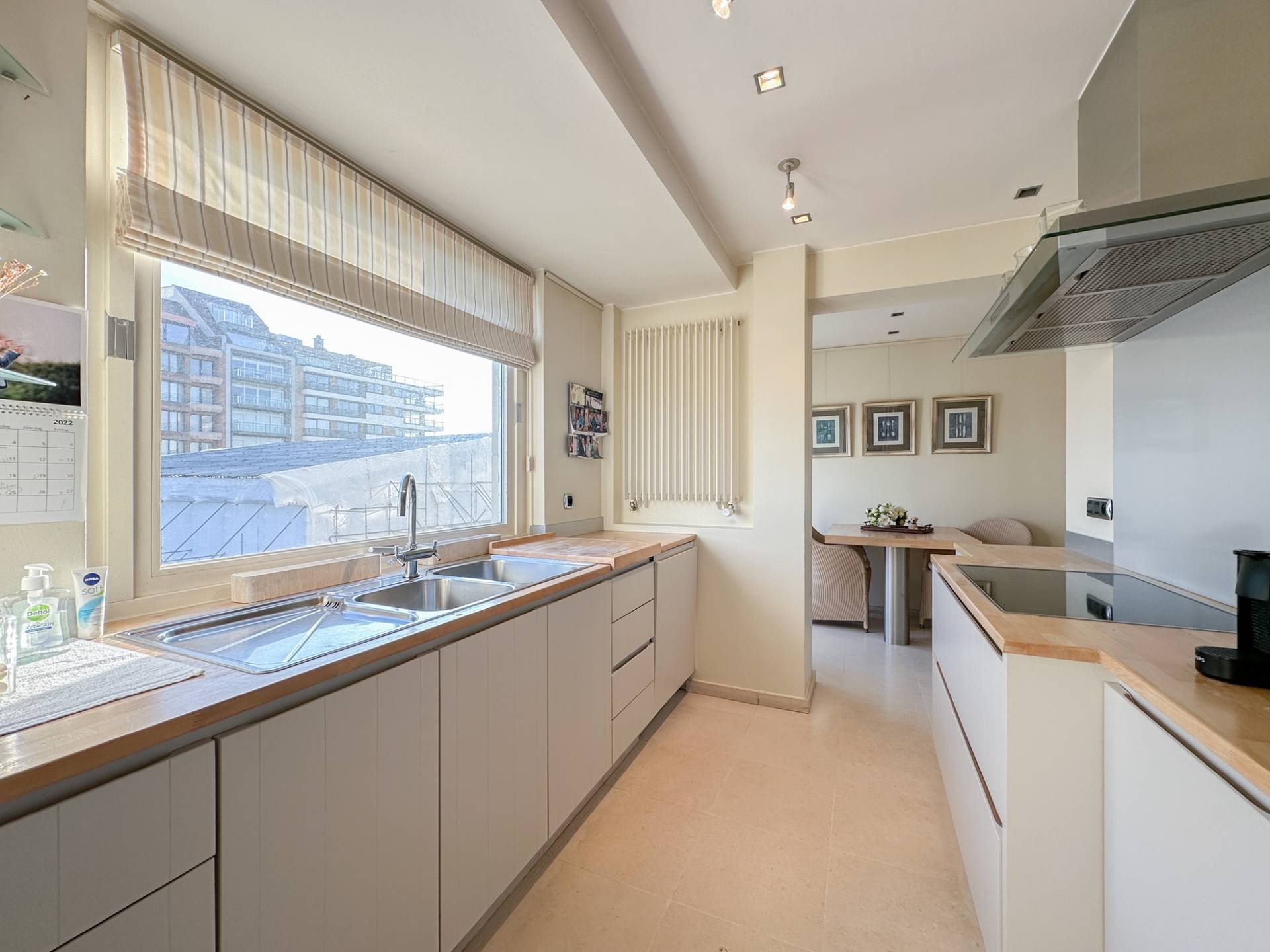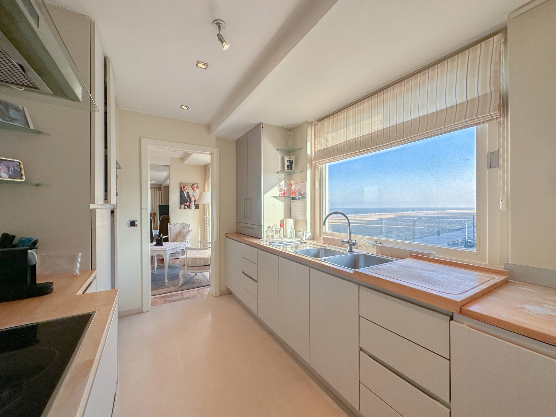 Samenstelling: Royale inkomhal met gastentoilet en vestiaire. Ruime woonkamer met aansluitend gezellige eetkamer. Beide ruimtes genieten van een prachtig zeezicht en zicht over het Albertplein. Afzonderlijke keuken, voorzien van alle moderne comfort. Vanuit de keuken is er eveneens een prachtig zeezicht! Cosy ontbijthoekje.