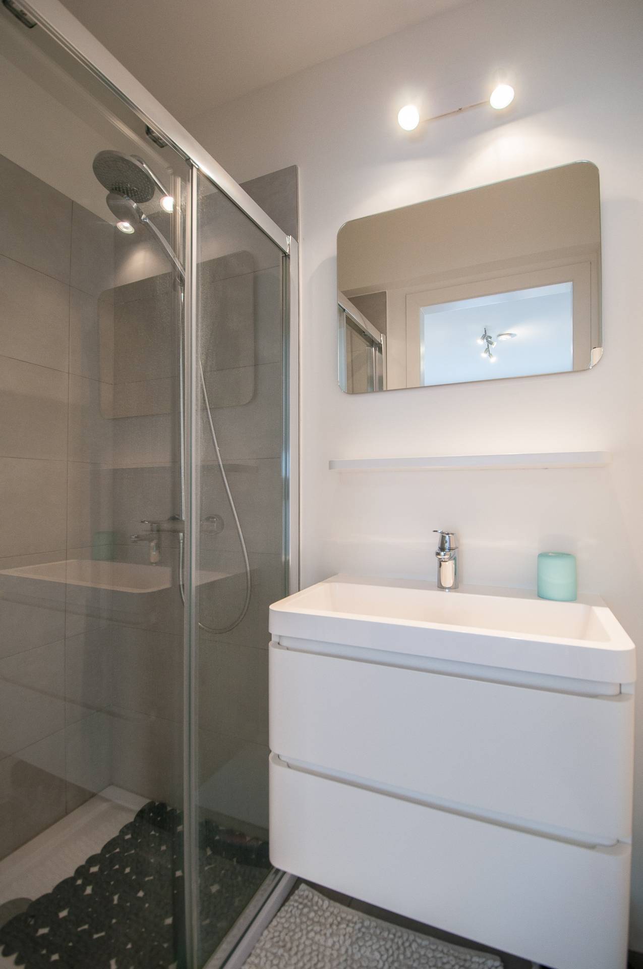 Er zijn 3 slaapkamers, waarvan 2 kamers die zich achteraan bevinden, elk met hun eigen bad-of douchekamer.