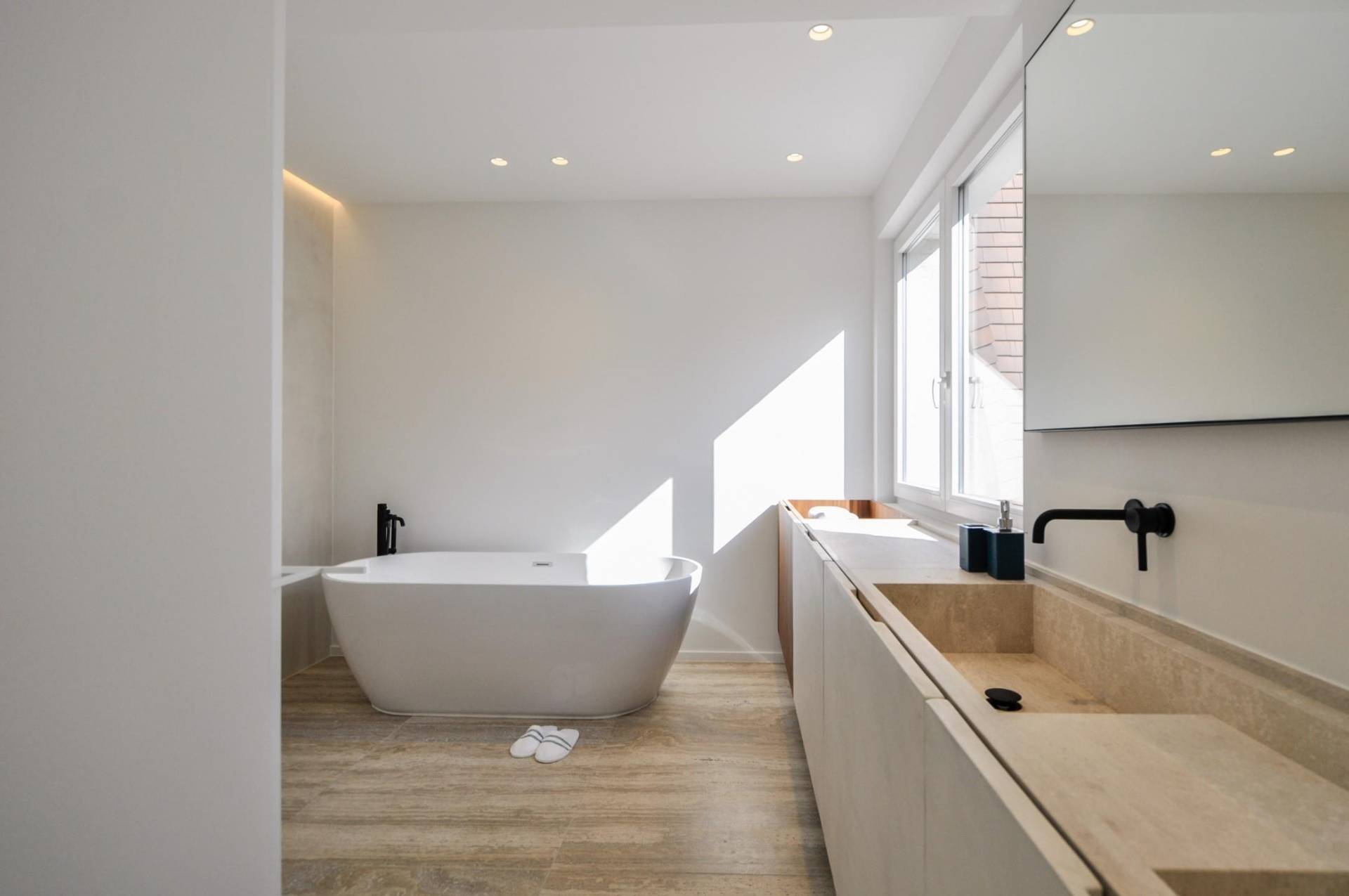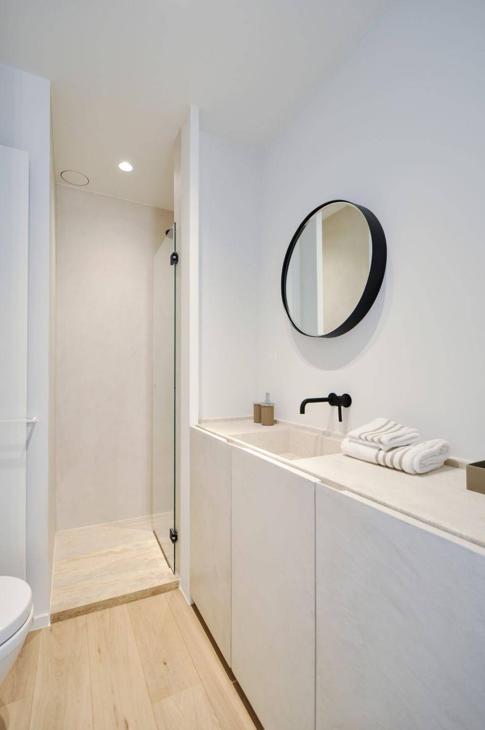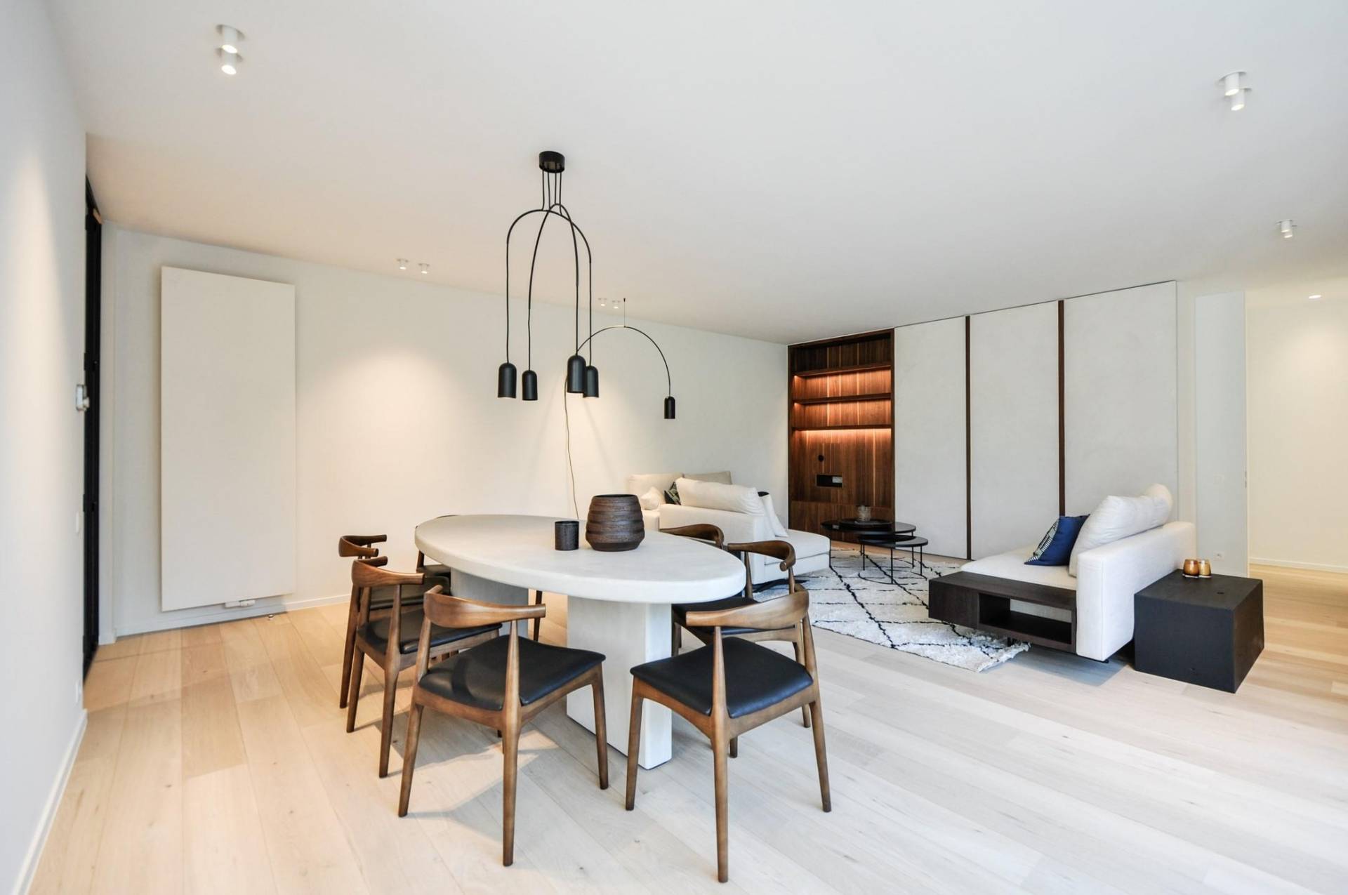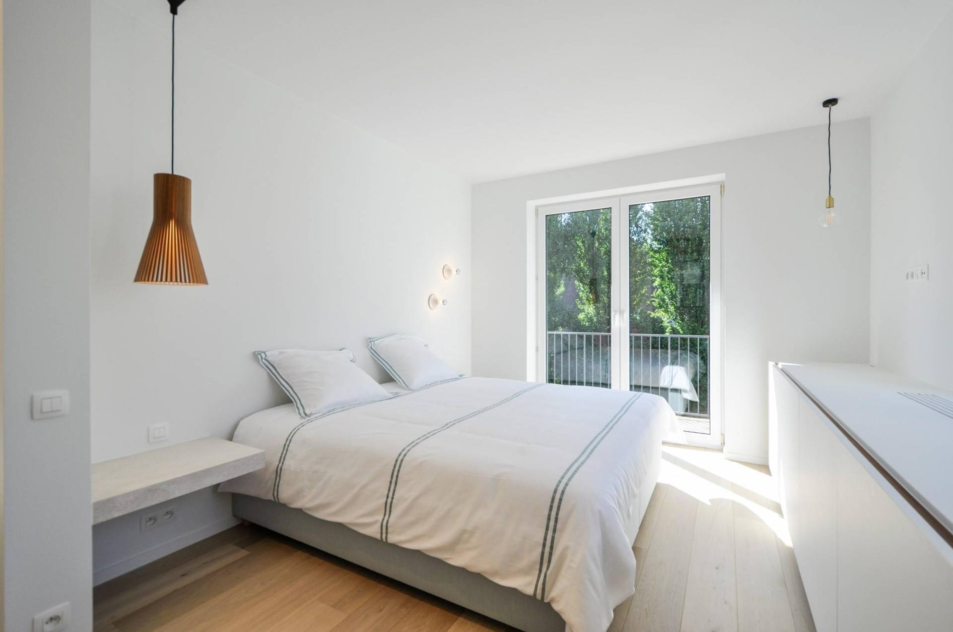 Het 3-slpk. appartement, met een bewoonbare oppervlakte van 154m2, werd volledig gerenoveerd met tijdloze, zeer hoogstaande materialen, en afgewerkt met oog voor detail.