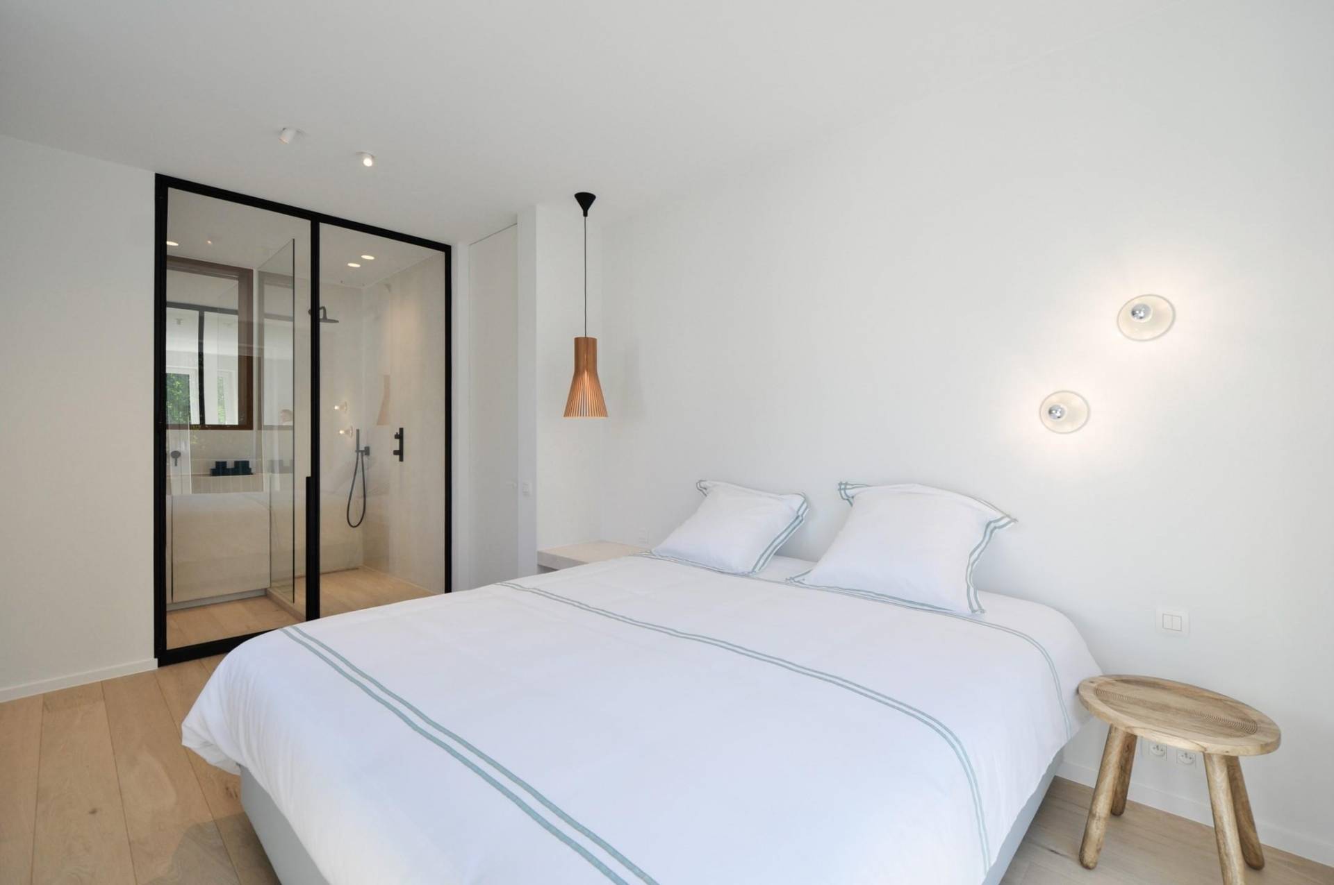 Er zijn 3 volwaardige, ruime slaapkamers, elk voorzien van ingemaakte kasten. Er zijn 3 stijlvol ingerichte badkamers.
