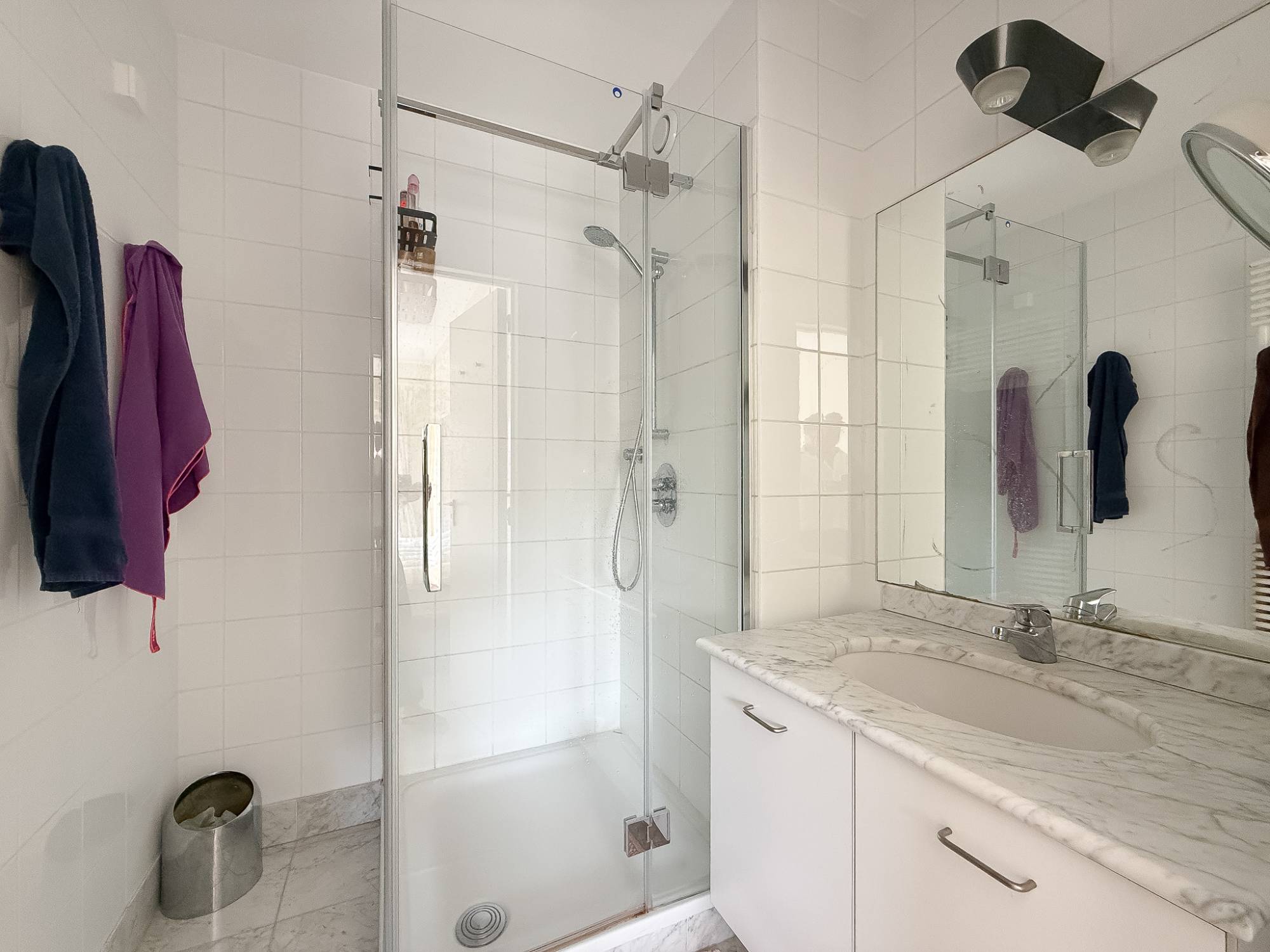 Aan de achterzijde van het appartement bevinden zich 3 volwaardige slaapkamers met ingemaakte kasten, elk met toegang tot een zonnig terras. Voor optimaal comfort beschikt dit appartement over een badkamer en twee aparte douchekamers.