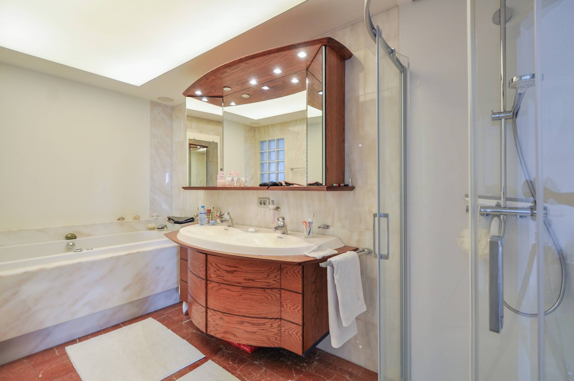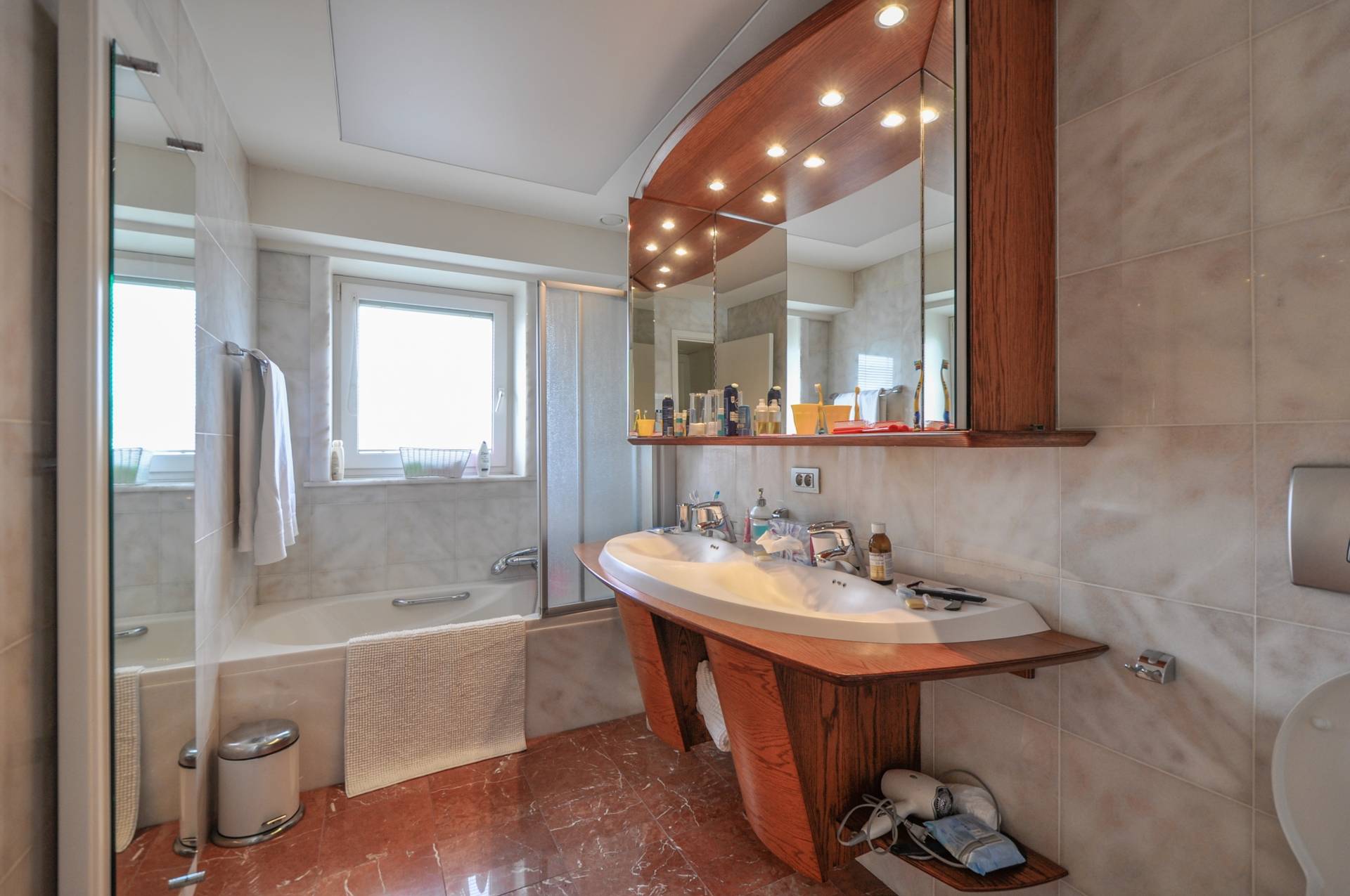 Op de bovenverdieping bevinden er zich 3 volwaardige, ruime slaapkamers. Er zijn 2 badkamers en 1 douchekamer. Tal van ingemaakte kasten.
