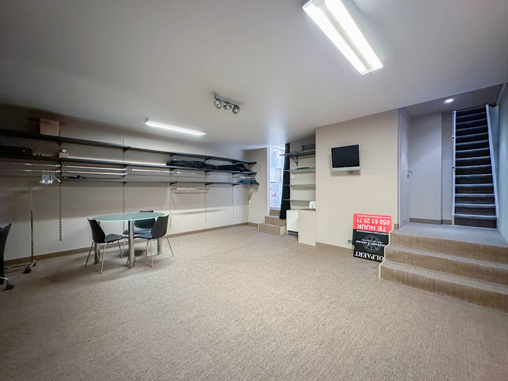 De totale oppervlakte van beide niveau's bedraagt 70m2. Er is een commerciële ruimte op het gelijkvloers en een keuken, een badkamer en een extra winkelruimte/stockruimte op de benedenverdieping, met directe verbinding tot de winkel!