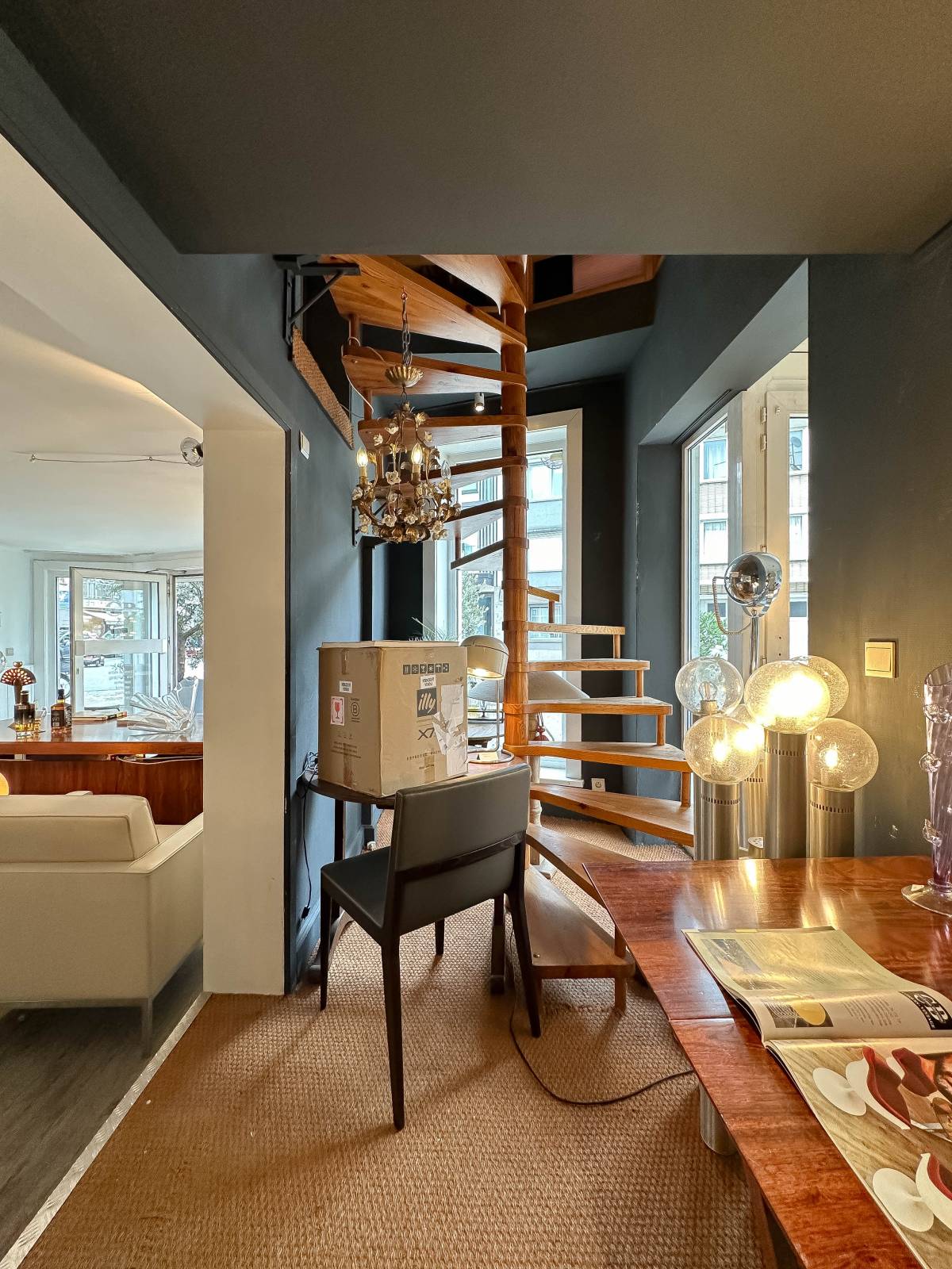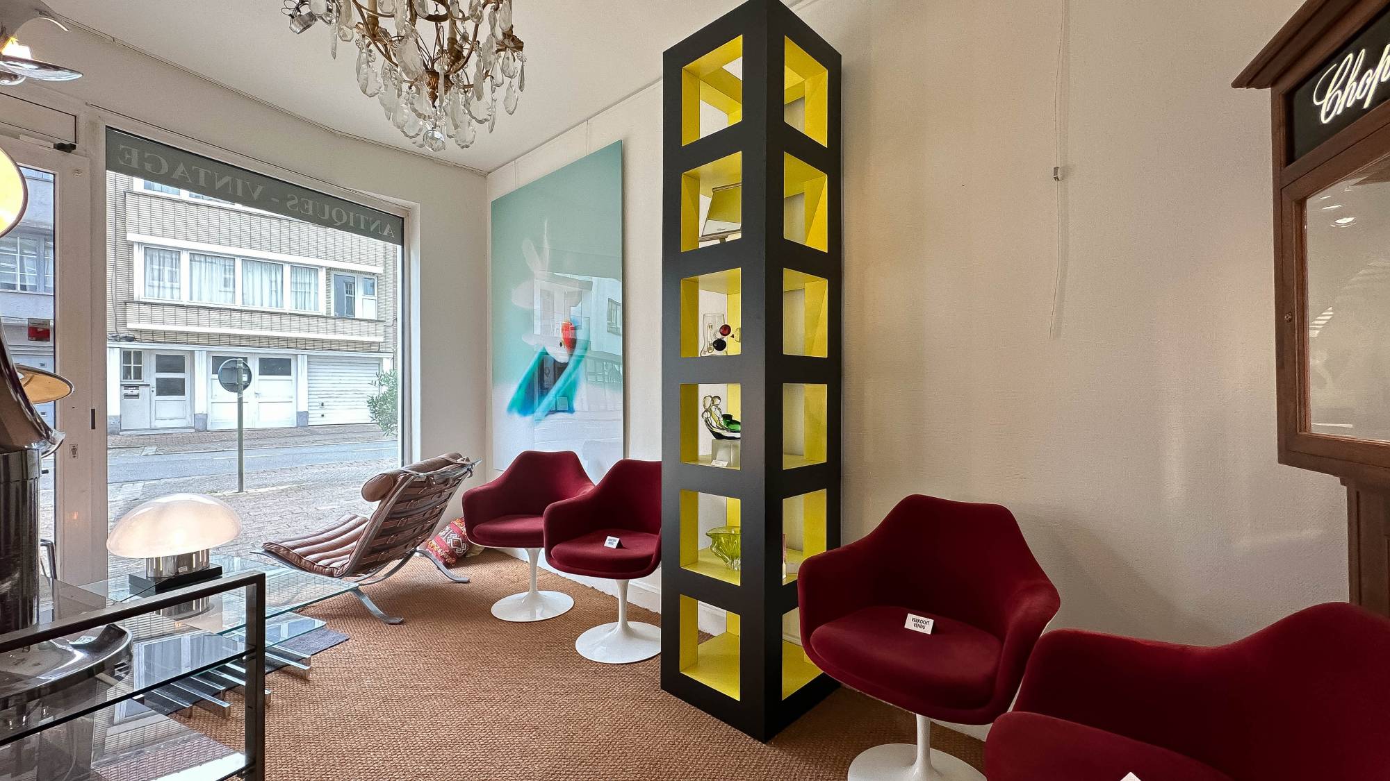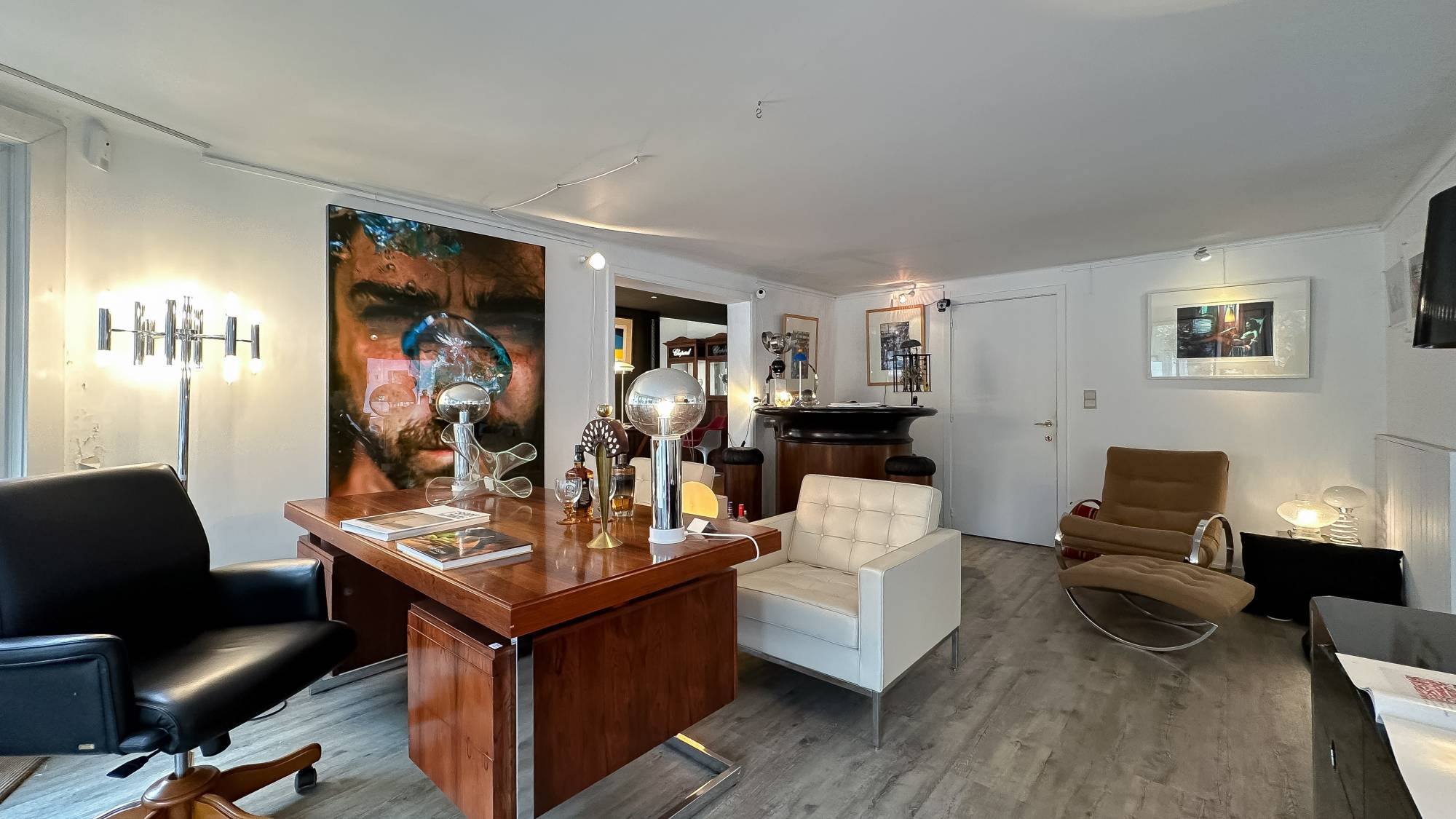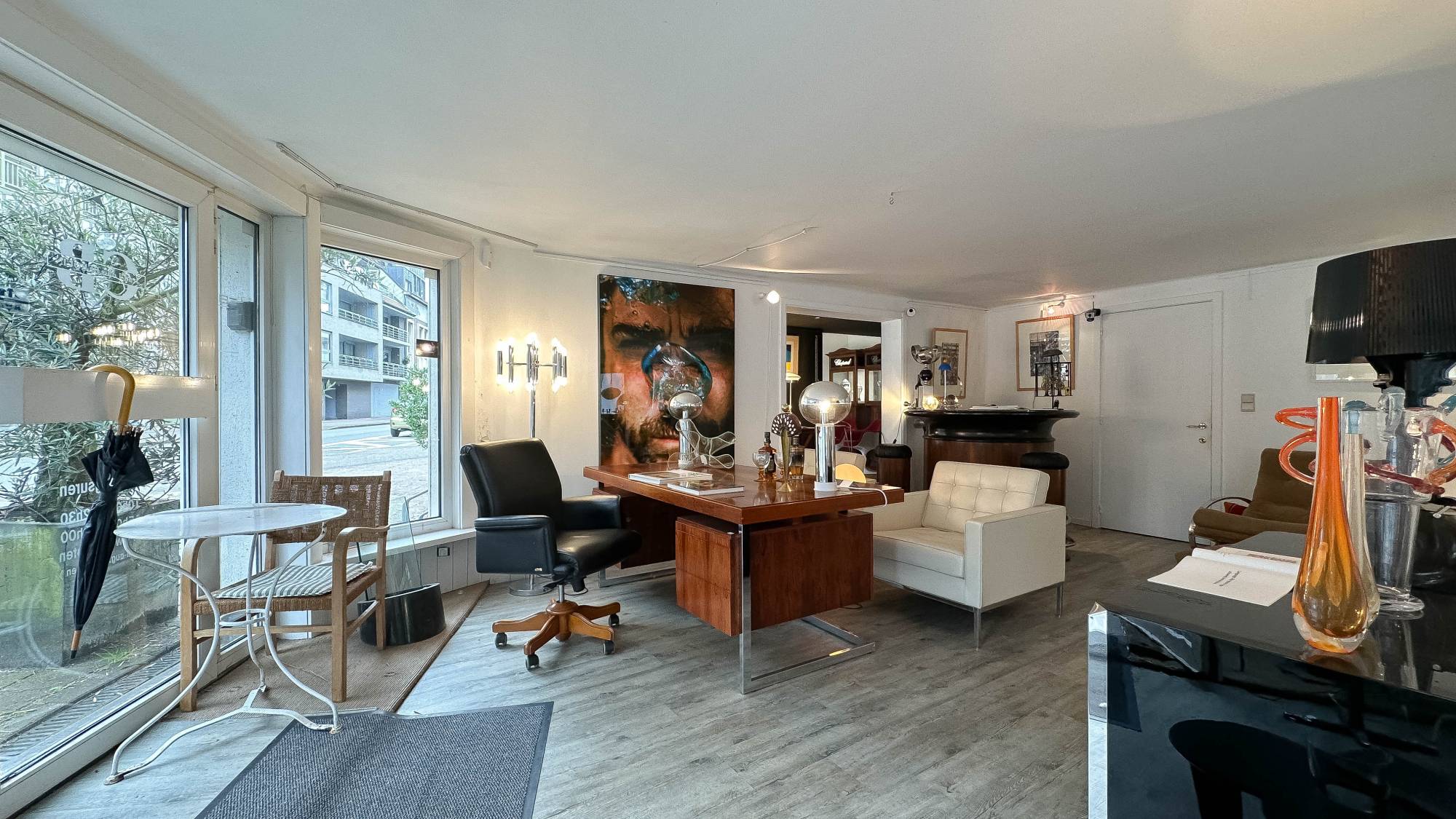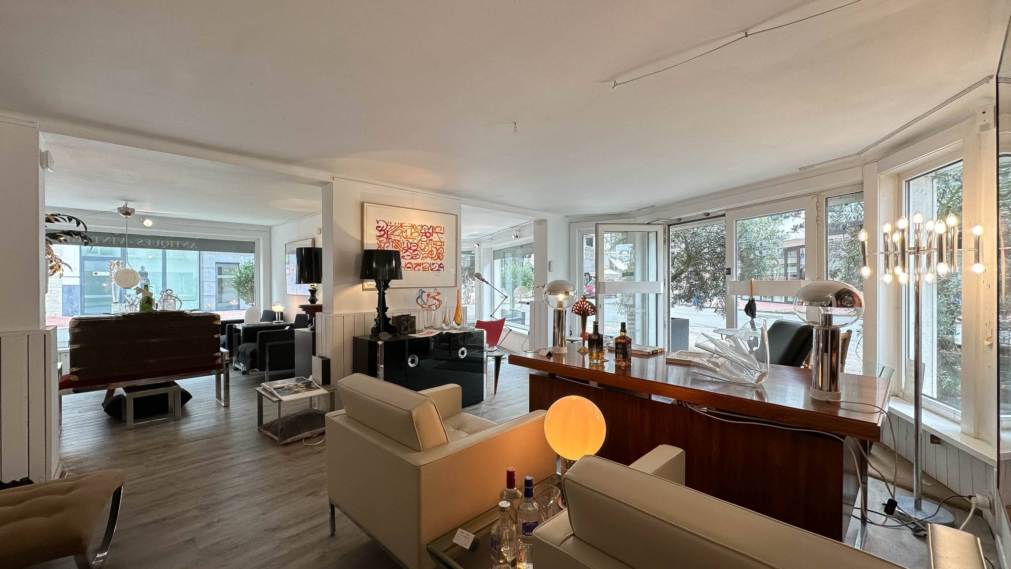 Op de eerste verdieping bevindt zich een woonruimte, bestaande uit een woonkamer, kitchenette, slaapkamer, douchekamers, en een tweede kitchenette. Deze woonruimte is zowel via een aparte ingang als via de winkel bereikbaar en kan afgesloten worden voor extra privacy.