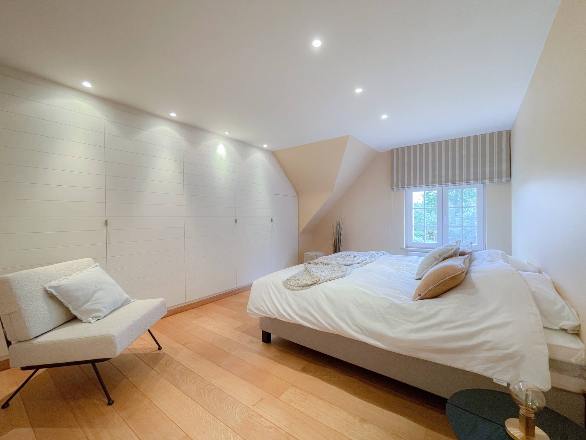 Op de 1e verdieping bevindt zich de nachthal / tv-hoek / bureelruimte. De master bedroom beschikt over een ensuite badkamer, bestaande uit ruime douche, lavabo en toilet. Ingemaakte kasten. Slaapkamer 2 en 3 beschikken eveneens over tal van ingemaakte kasten. Er is een afzonderlijke badkamer met ruime douche en lavabo. Apart toilet.