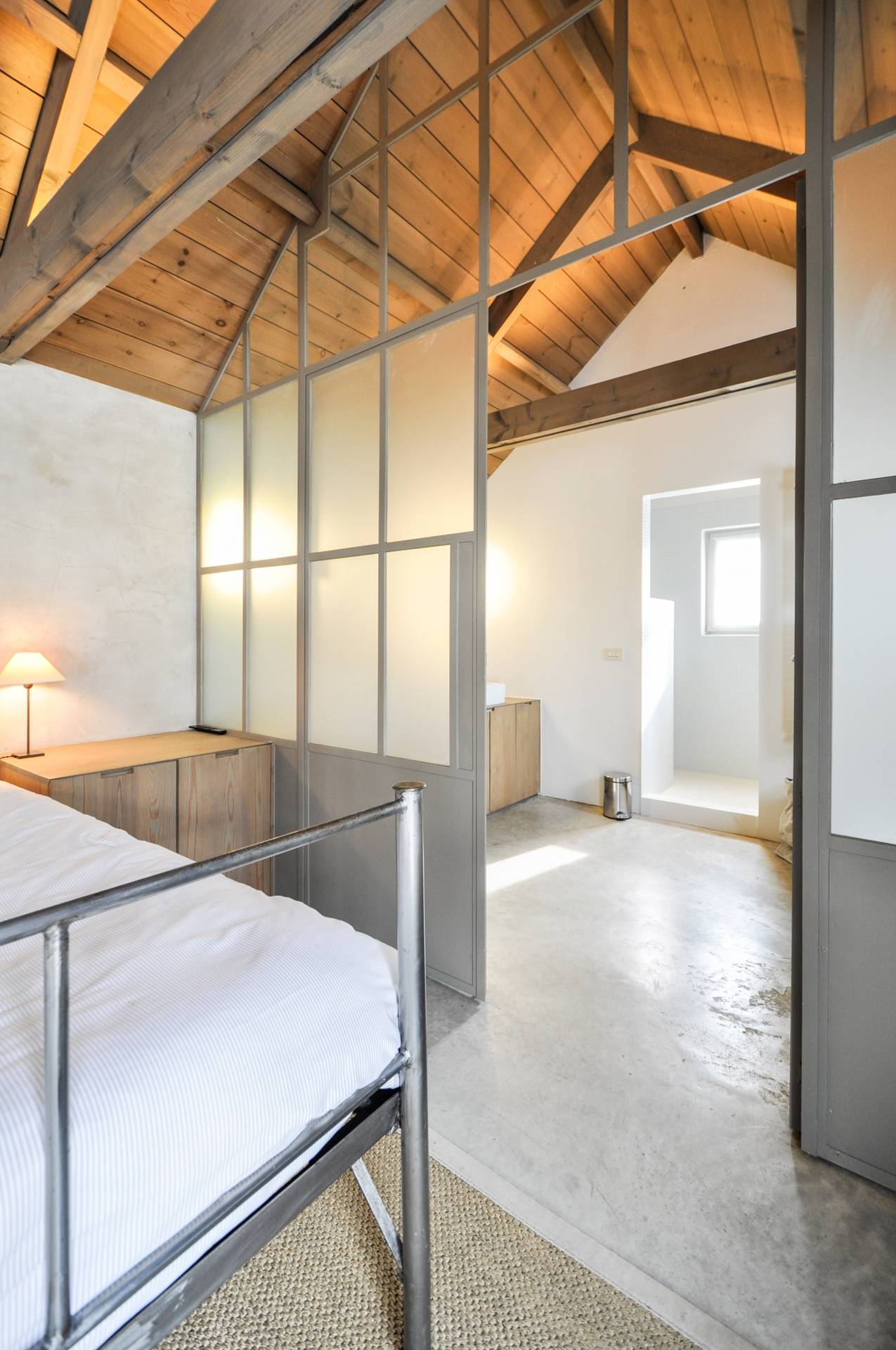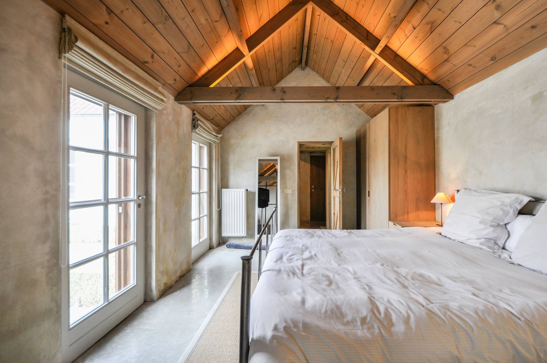 Op de bovenverdieping: 1 Slaapkamer met bijhorende douchekamer.