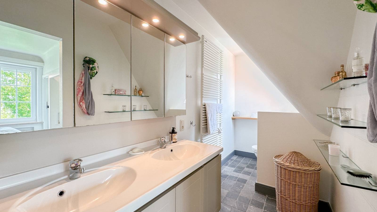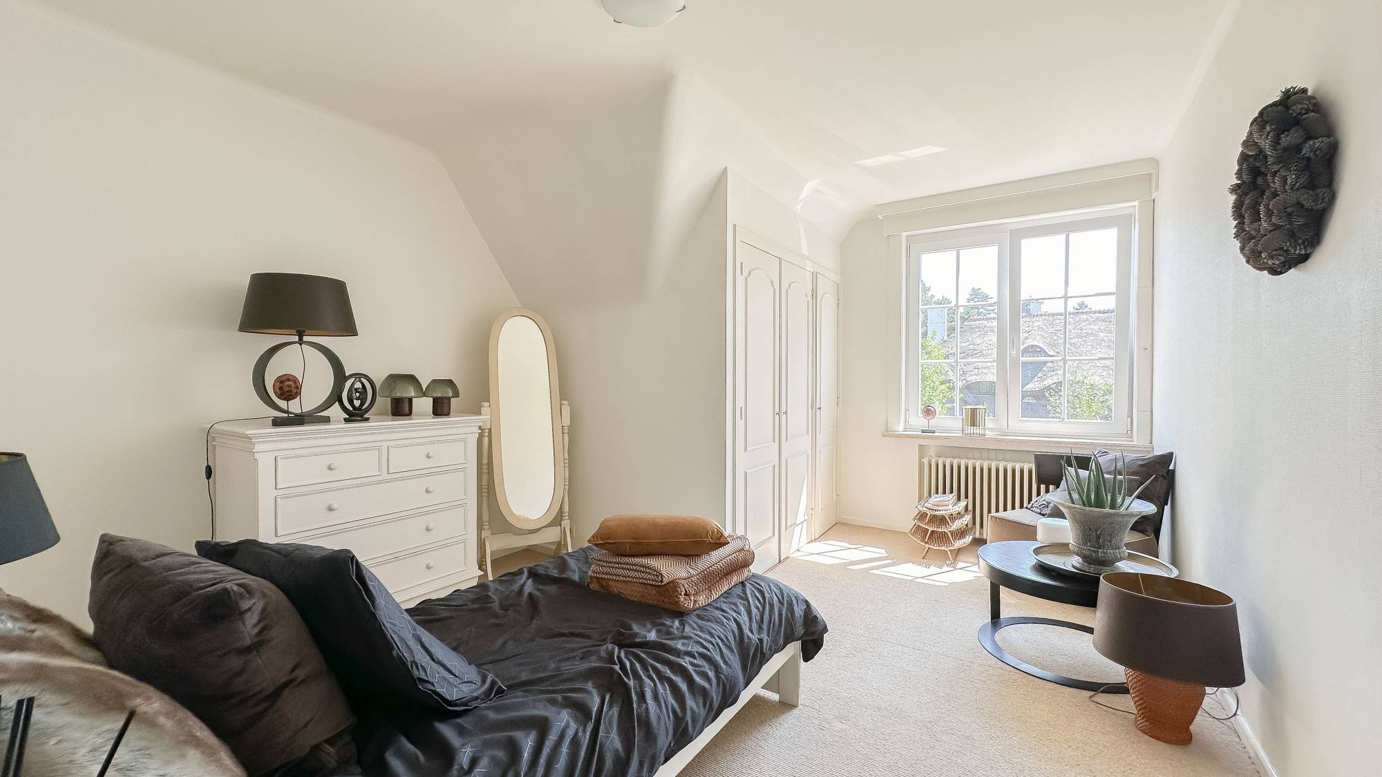 Op de bovenverdieping bevindt zich de 5e slaapkamer, die momenteel ingericht is als bureelruimte. Afzonderlijke polyvalente ruimte.