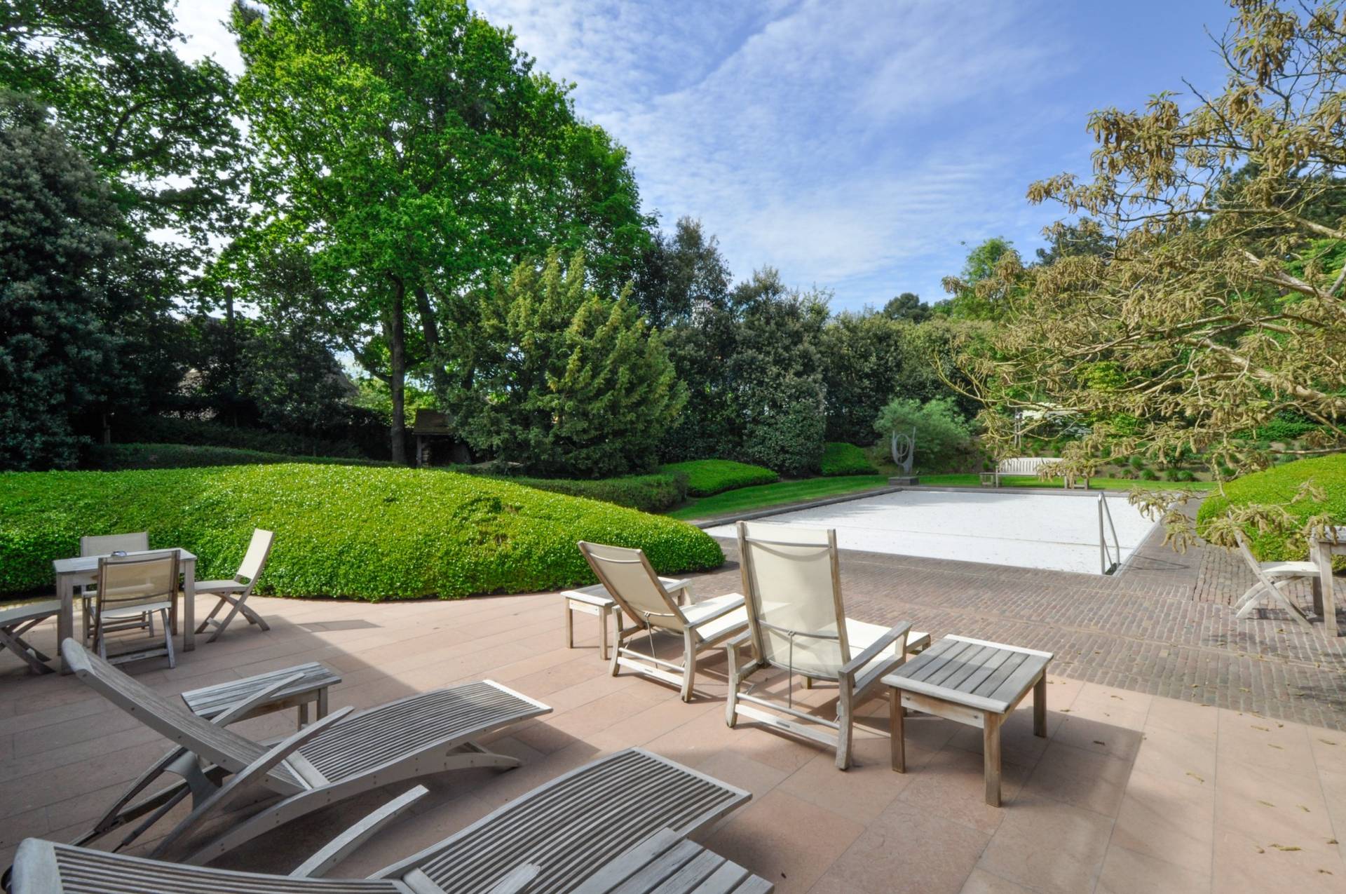 De villa werd eveneens voorzien van een prachtig buitenzwembad en een volledige welnessruimte met sauna, hammam, relaxruimte, open haard...