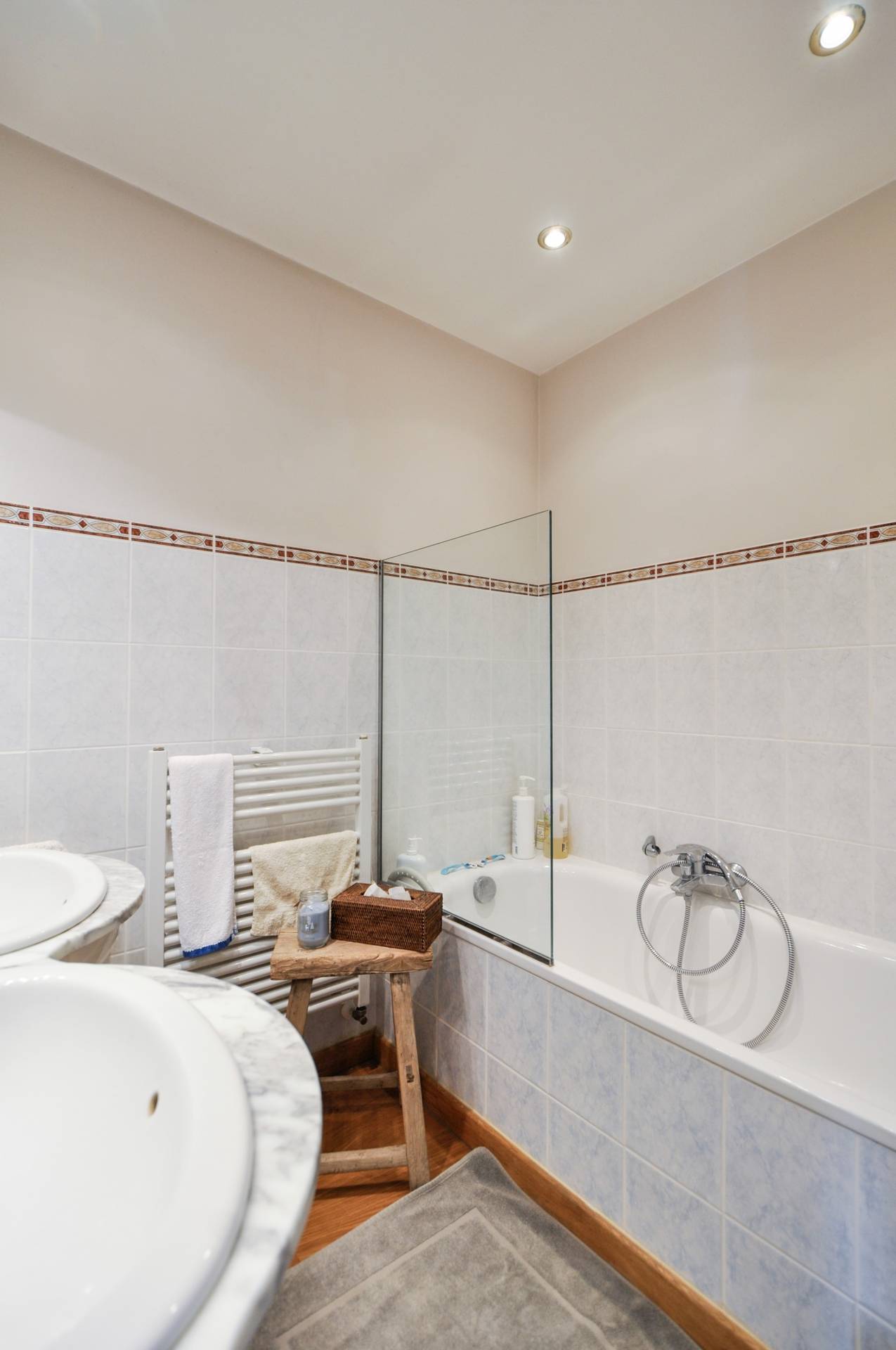 Er is 1 ruime, volwaardige slaapkamer met ingemaakte kasten. 1 Afzonderlijke badkamer met ligbad/douche, en dubbele lavabo. Afzonderlijk toilet.