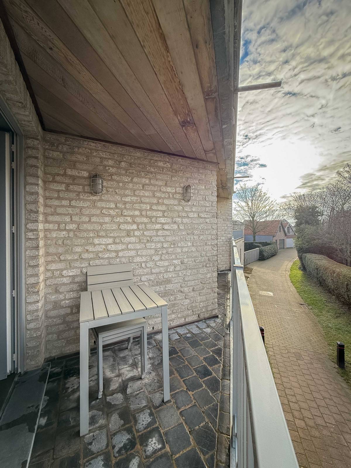 De lichtrijke woonkamer, gelegen op de hoek, biedt een prachtig open zicht op een rustig paadje en sluit aan op een gezellige eethoek. De praktische, open keuken is volledig uitgerust en beschikt over een elegant SMEG-gasfornuis. Twee zonnige, overdekte terrassen bieden extra buitenruimte en maken het appartement nog aantrekkelijker.