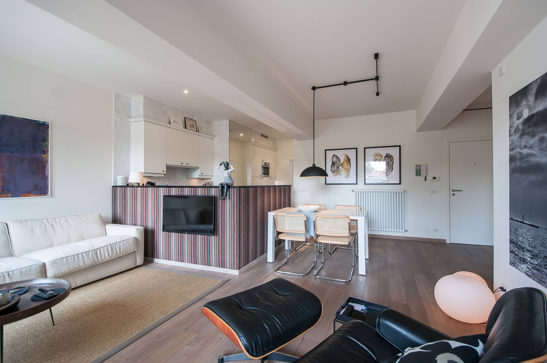 Het appartement heeft een instant "good feeling", mede dankzij de hoge plafonds en is ideaal als pied-à-terre voor zorgeloze vakanties aan zee! Het appartement werd smaakvol ingericht, met kwalitatieve, hoogstaande materialen.