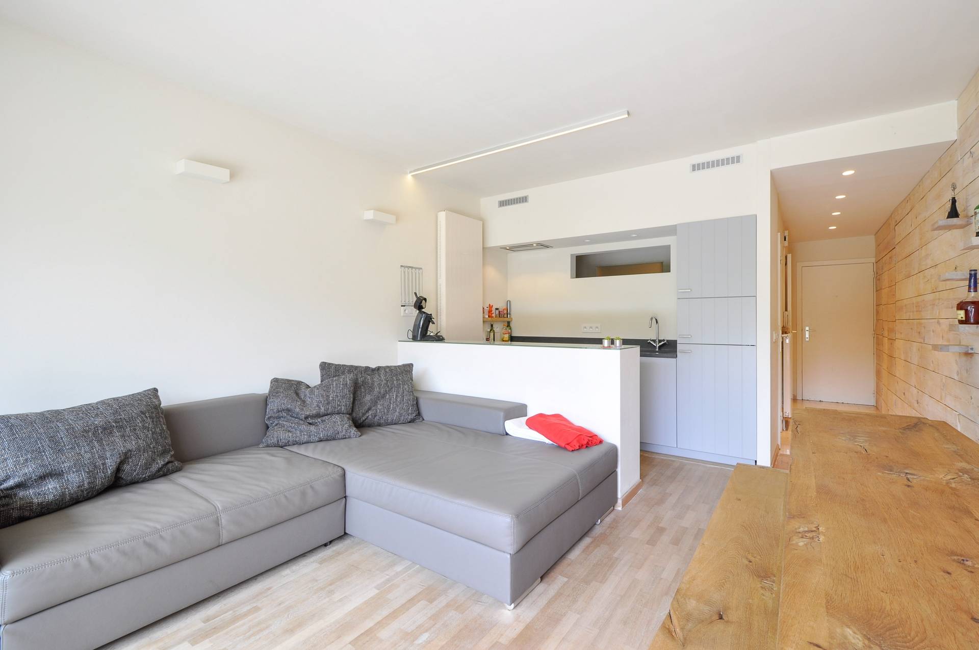 Samenstelling: Inkom met vestiaire. Zonnige woonkamer die uitgeeft op een aangenaam, Zuid-gericht terras en tuintje. Eethoek. Open keuken.