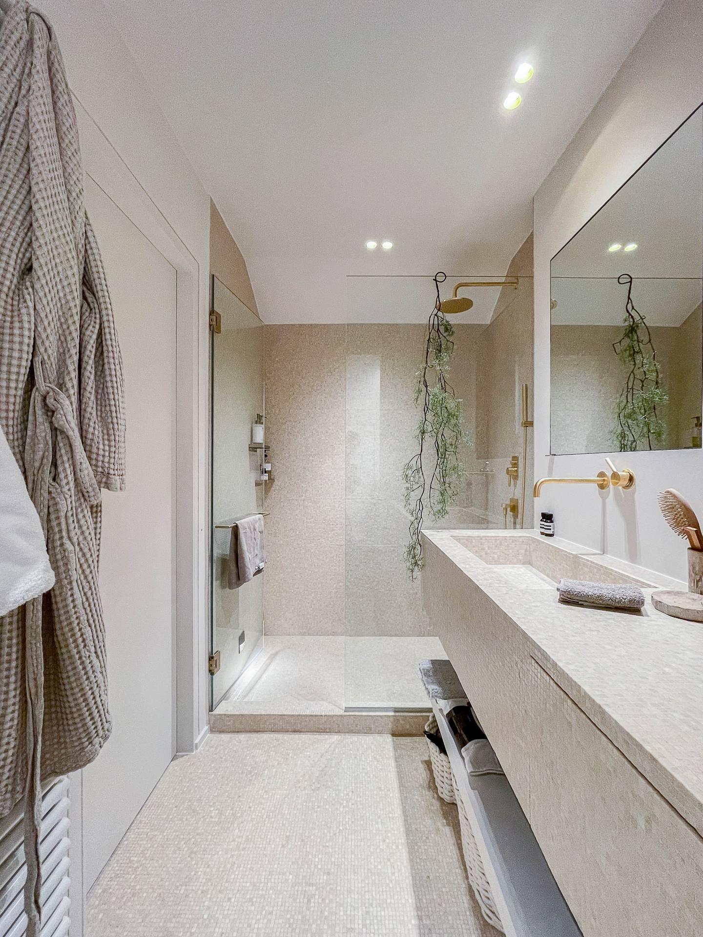 Op de bovenverdieping bevindt er zich 1 hele ruime, luchtige slaapkamer met tal van ingemaakte kasten. Vanuit de slaapkamer heeft men een mooi open zicht over het Zoute. Luxueus en smaakvol ingerichte badkamer bestaande uit ruime douche, lavabo en toilet.